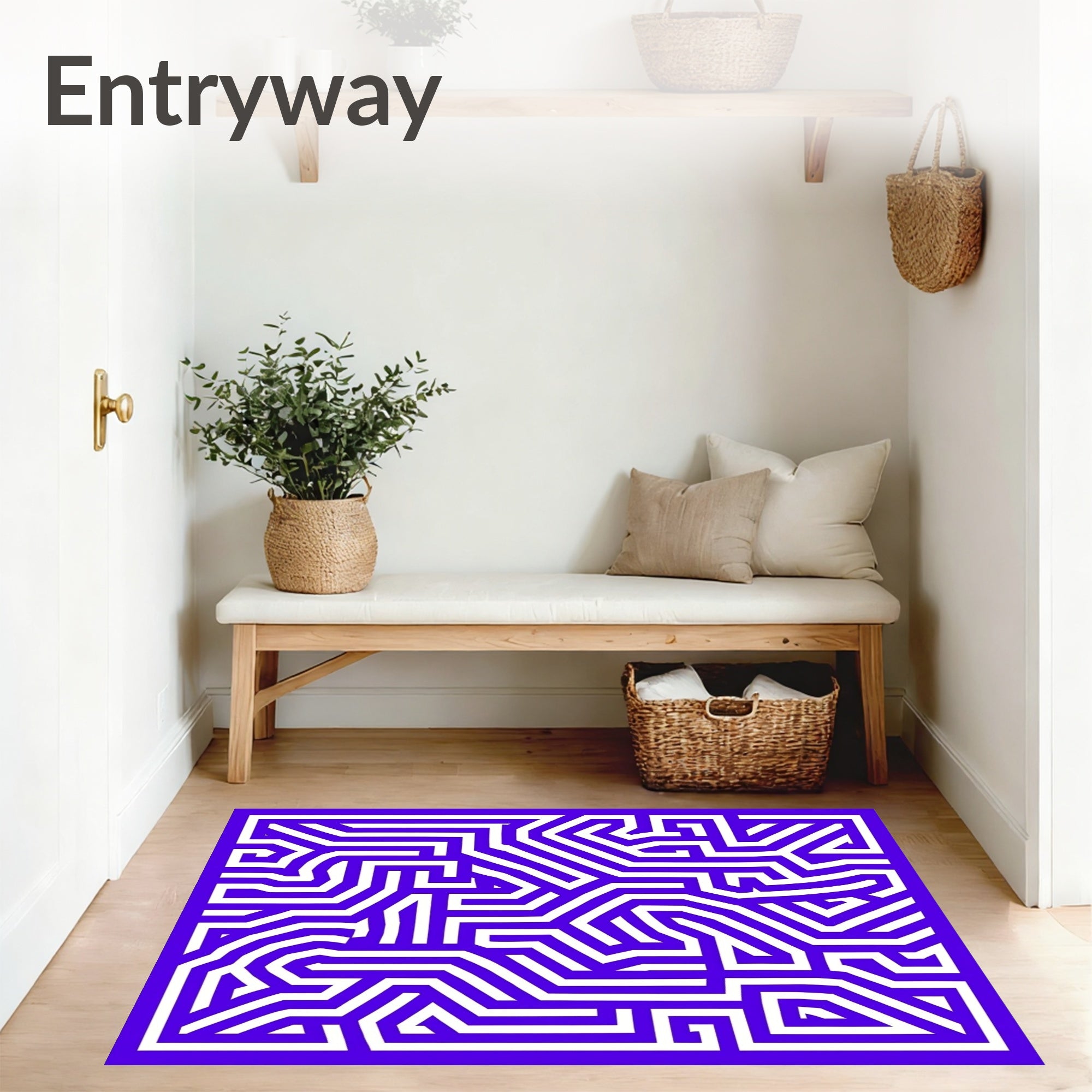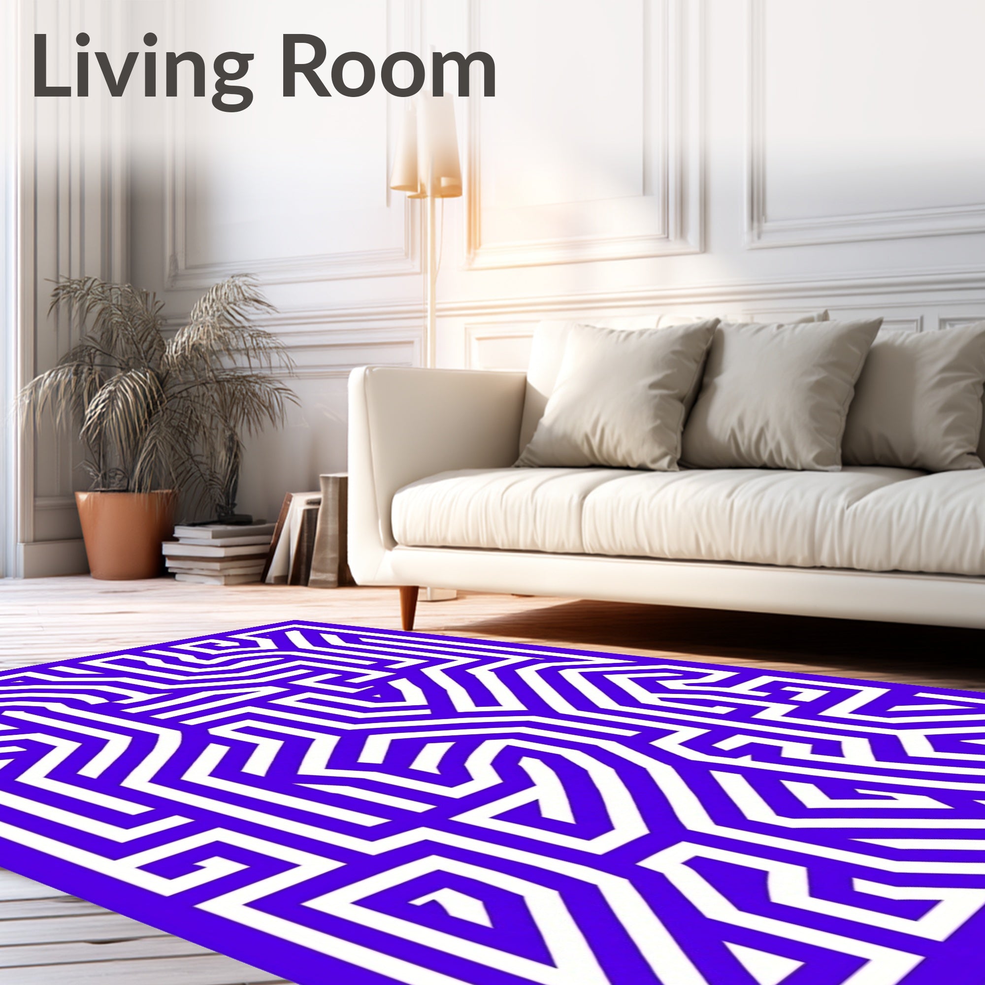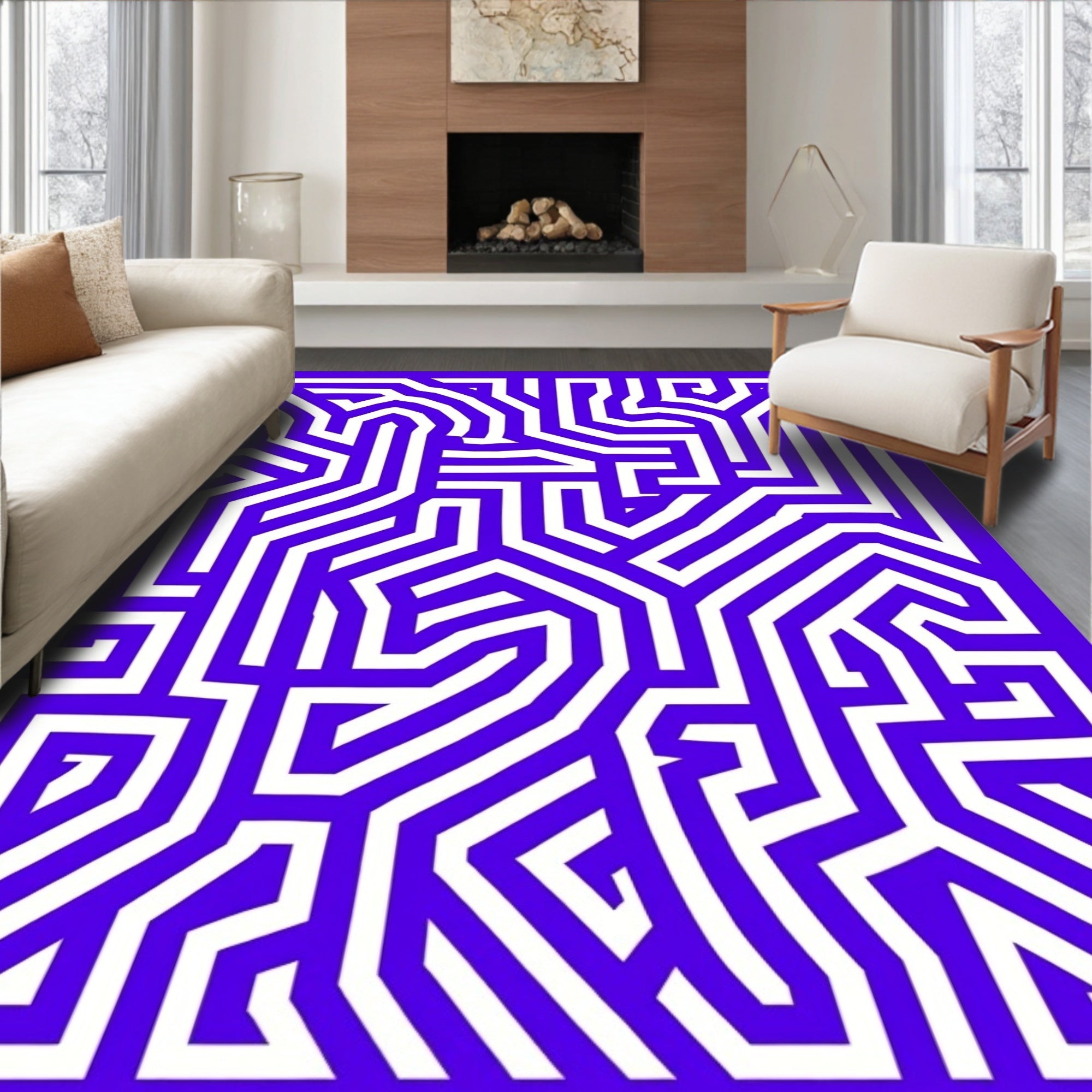 Flatwoven High Traffic Area Rug, Retro Lattice Maze with Abstract Interlocking Motifs, Non Slip, Stain Resistant, Washable Area Rugs for Living Room, Bedroom (Purple) Overview: