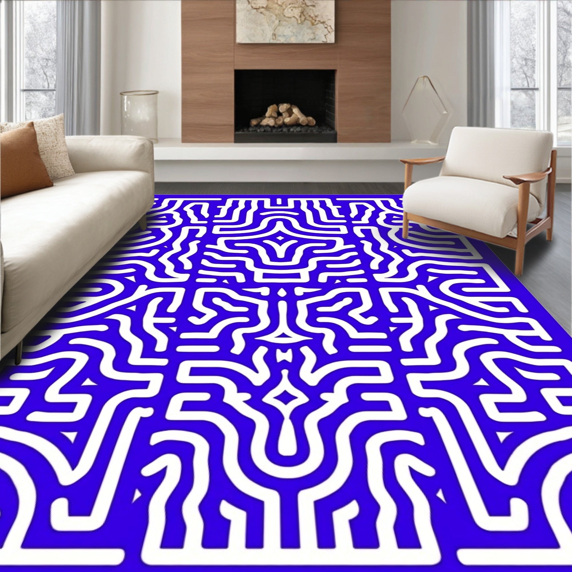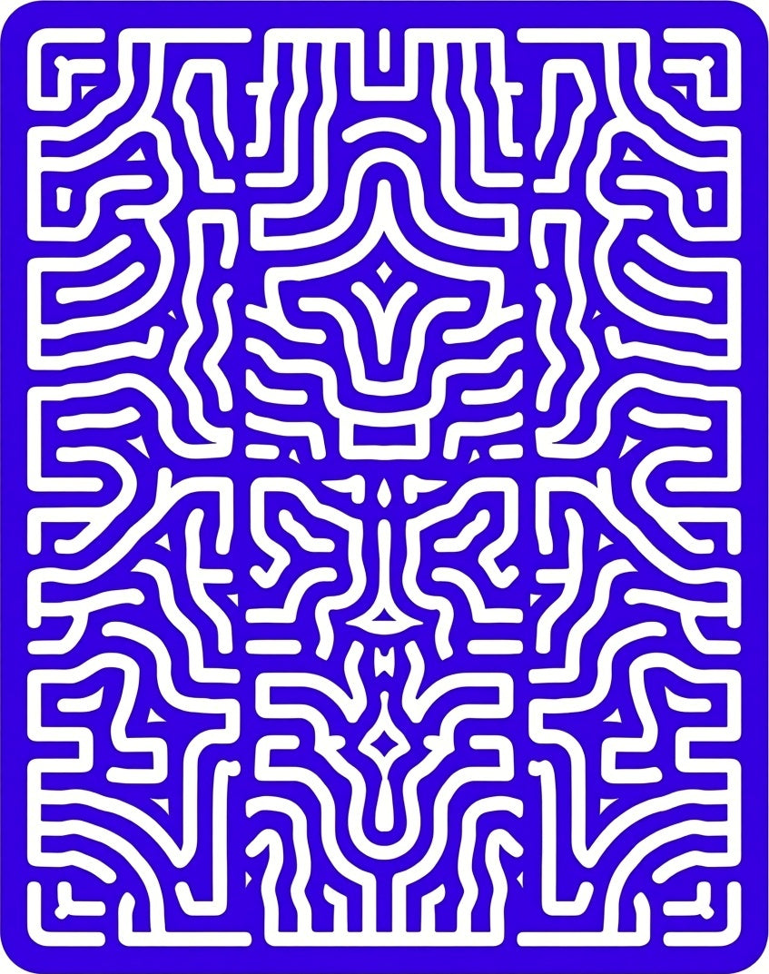 Retro Optical Maze with Playful Interlocking Tiles (Blue)