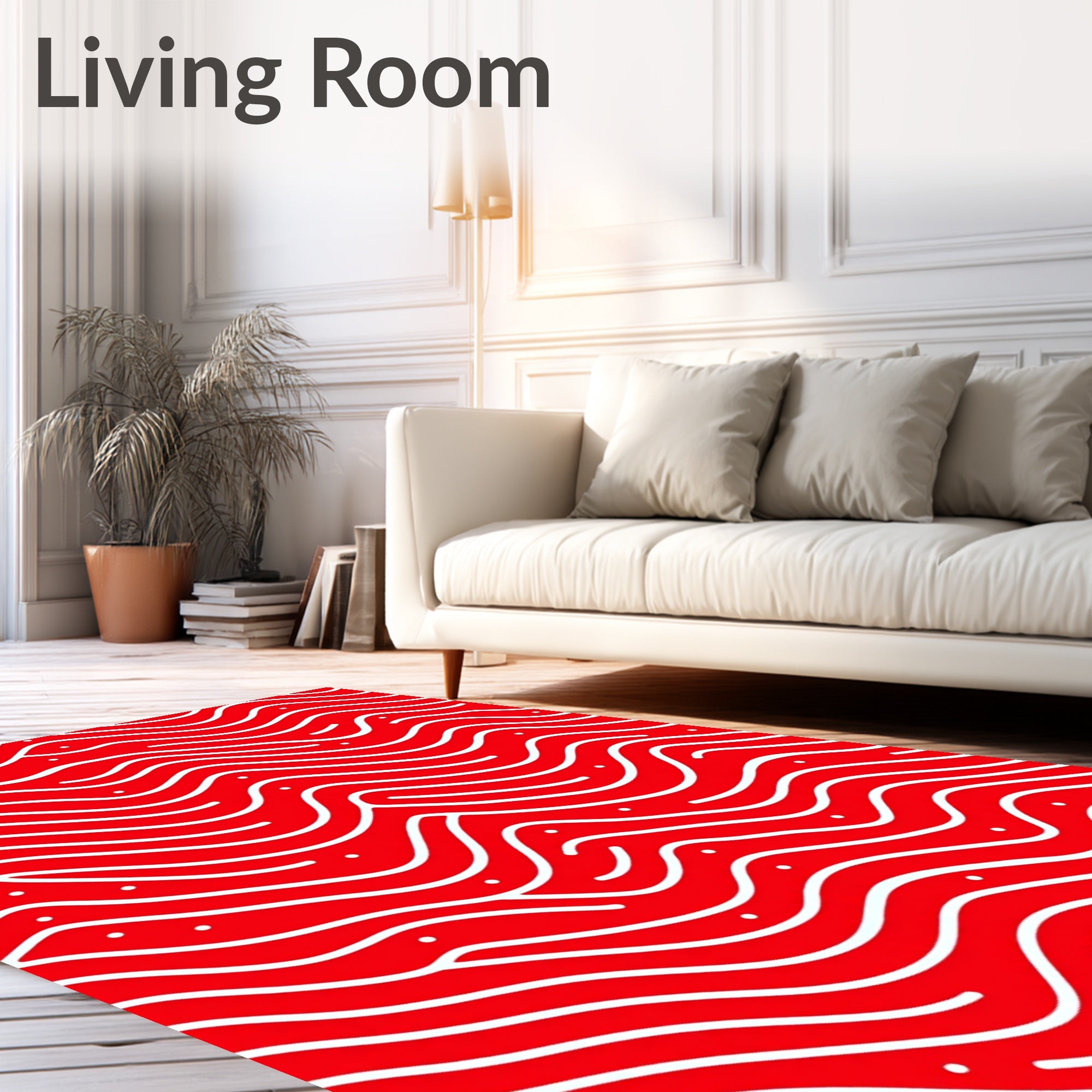 Flatwoven High Traffic Area Rug, Retro Pop Wave with Dynamic Stripe and Dotted Highlights, Non Slip, Stain Resistant, Washable Area Rugs for Living Room, Bedroom (Red) Overview: