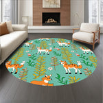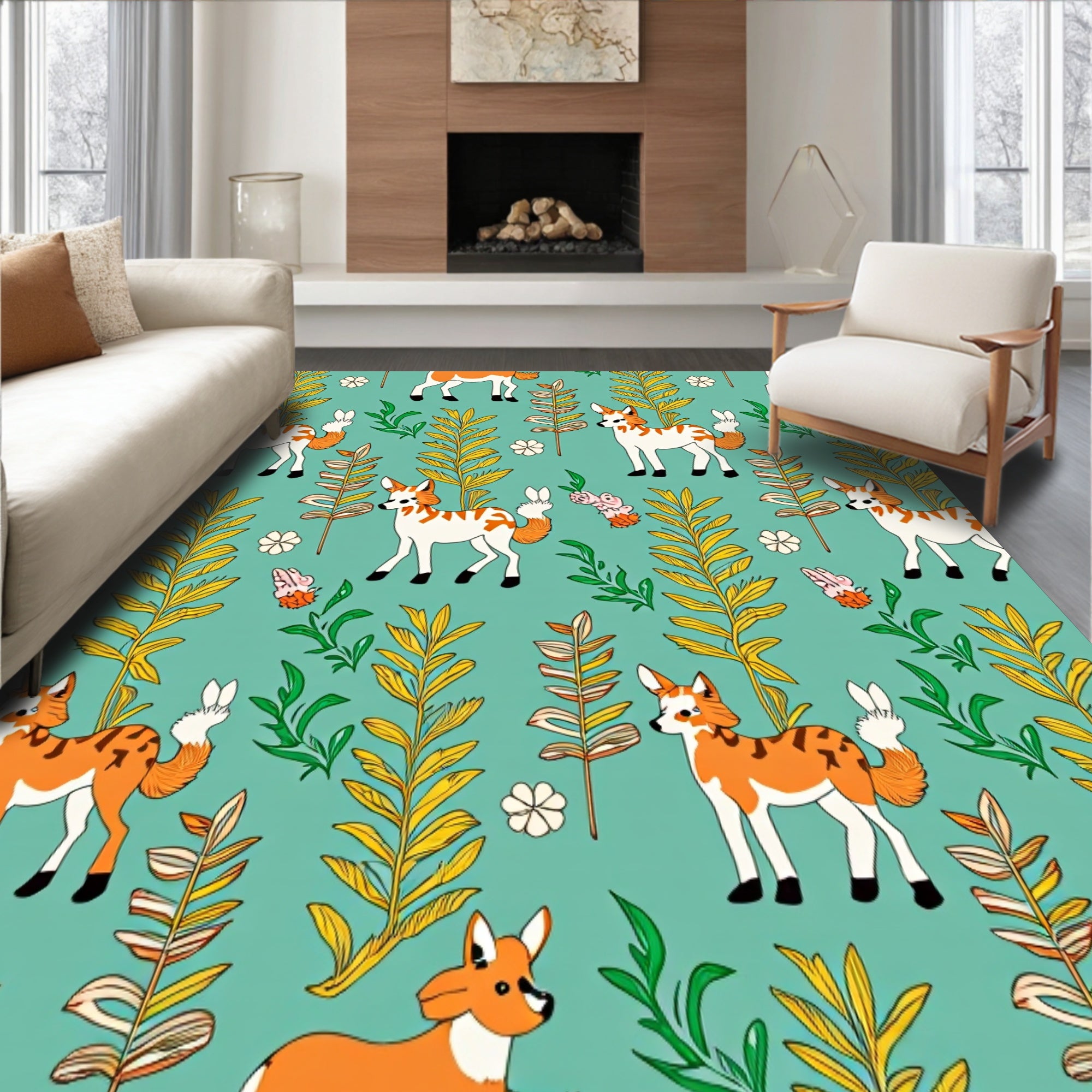 Flatwoven High Traffic Area Rug, Retro Woodland Creatures Boho with Fern Branch Details, Non Slip, Stain Resistant, Washable Area Rugs for Living Room, Bedroom (Blue) Overview: