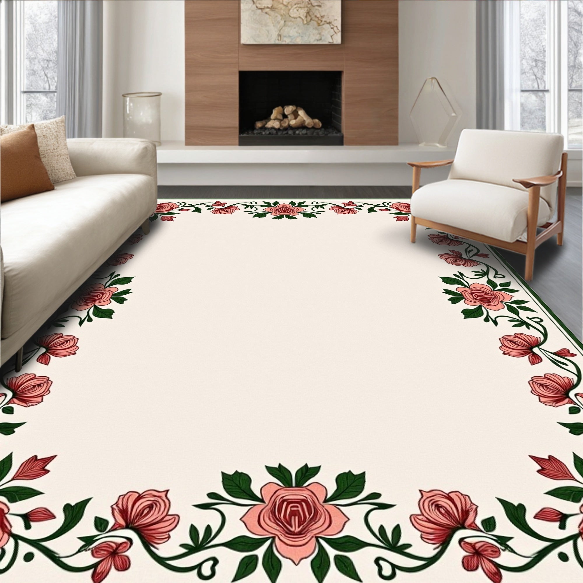 Flatwoven High Traffic Area Rug, Rose Garden Tapestry Design Floor Covering, Non Slip, Stain Resistant, Washable Area Rugs for Living Room, Bedroom (Pink) Overview:
