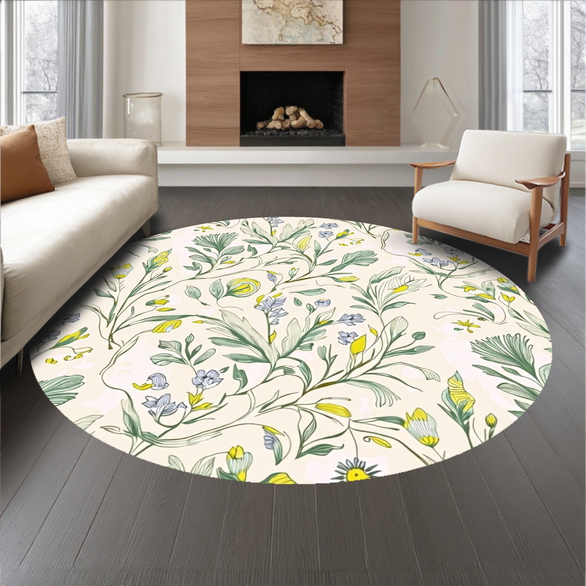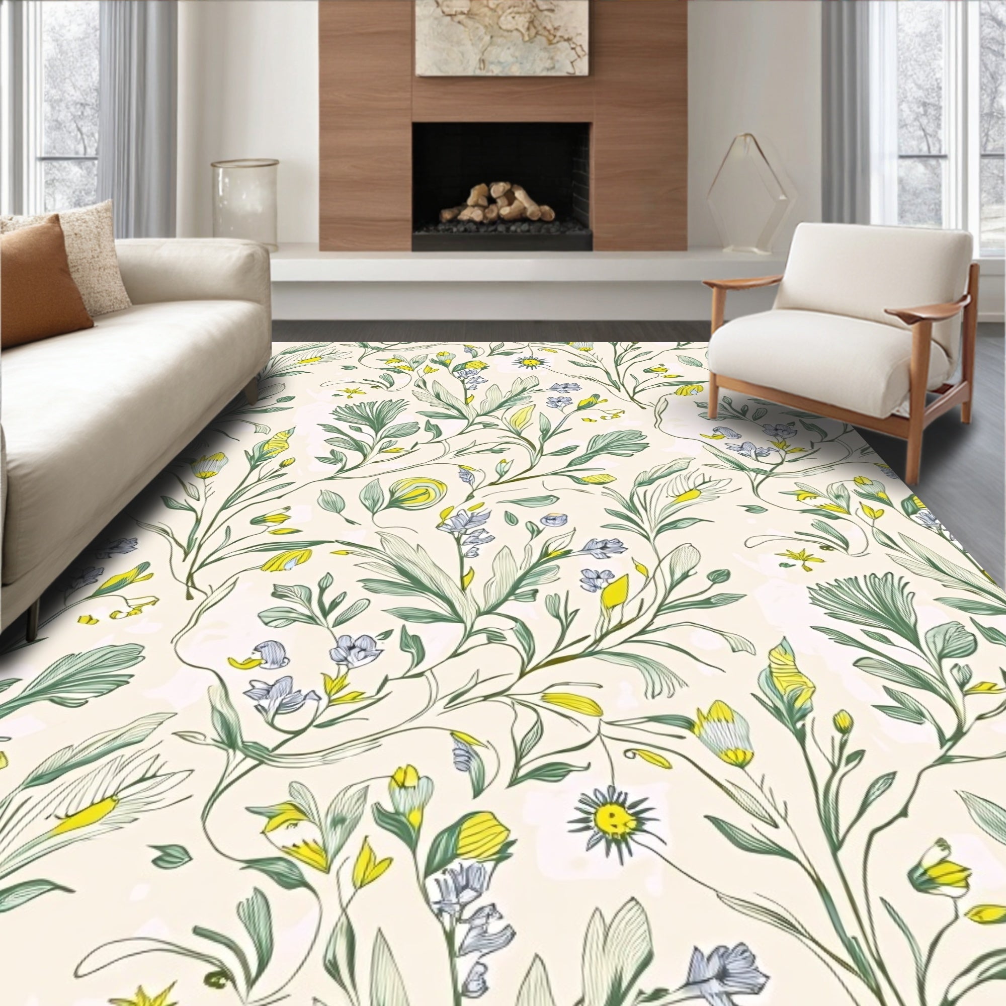 Flatwoven High Traffic Area Rug, Rustic Farmhouse Faded Meadow Whimsical Arrangement, Non Slip, Stain Resistant, Washable Area Rugs for Living Room, Bedroom (Beige) Overview: