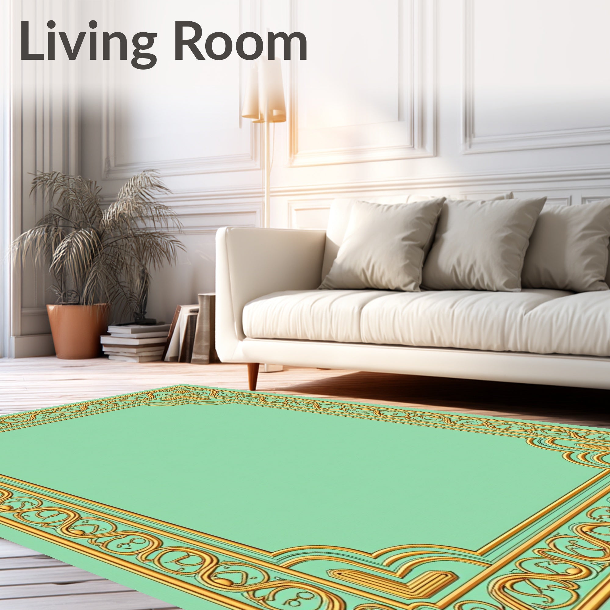 Flatwoven High Traffic Area Rug, Sage Filigree with Swirling Ornamental Borders, Non Slip, Stain Resistant, Washable Area Rugs for Living Room, Bedroom (Gold) Overview: