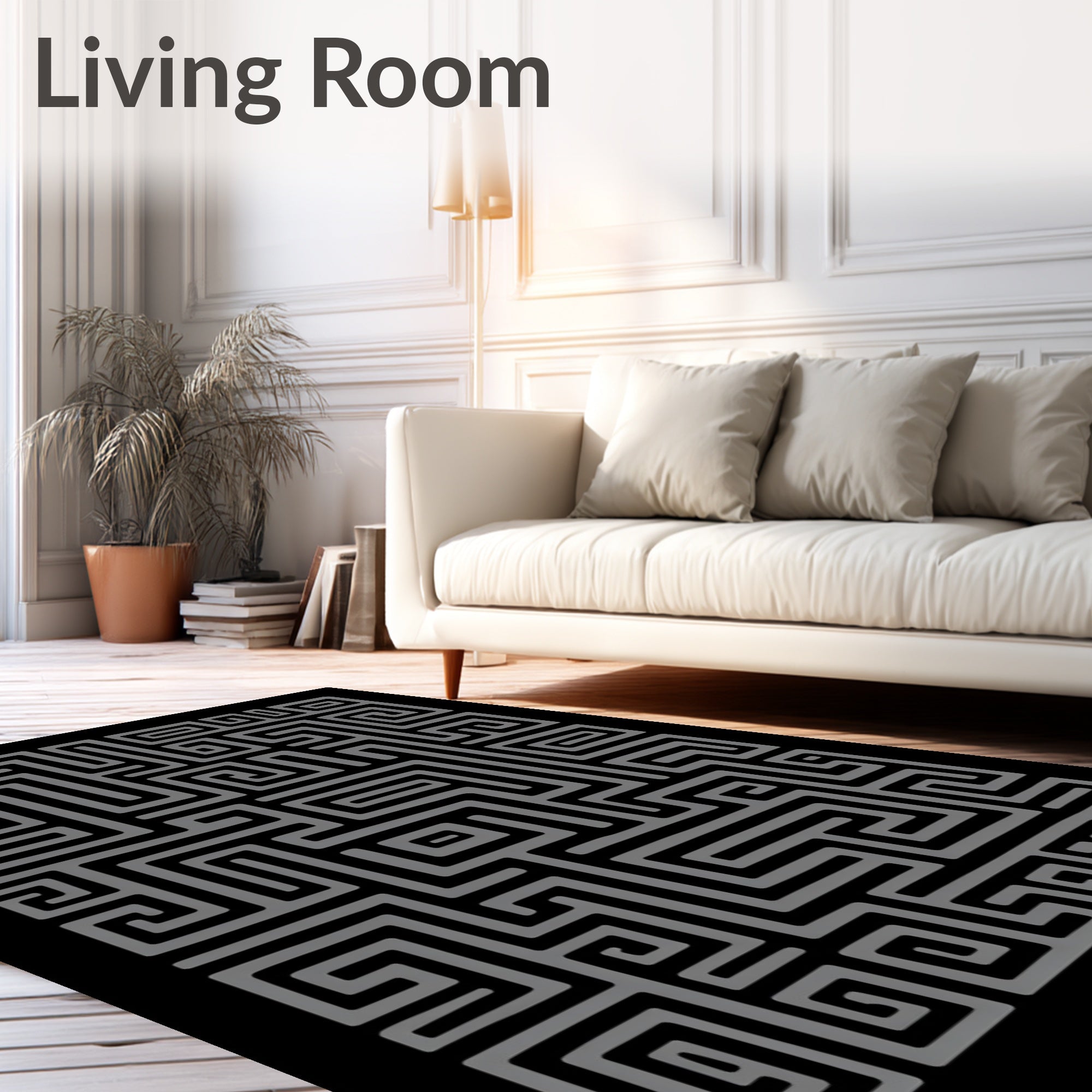 Flatwoven High Traffic Area Rug, Shadow Maze Labyrinth Comfort Designer Floor, Non Slip, Stain Resistant, Washable Area Rugs for Living Room, Bedroom (Black) Overview: