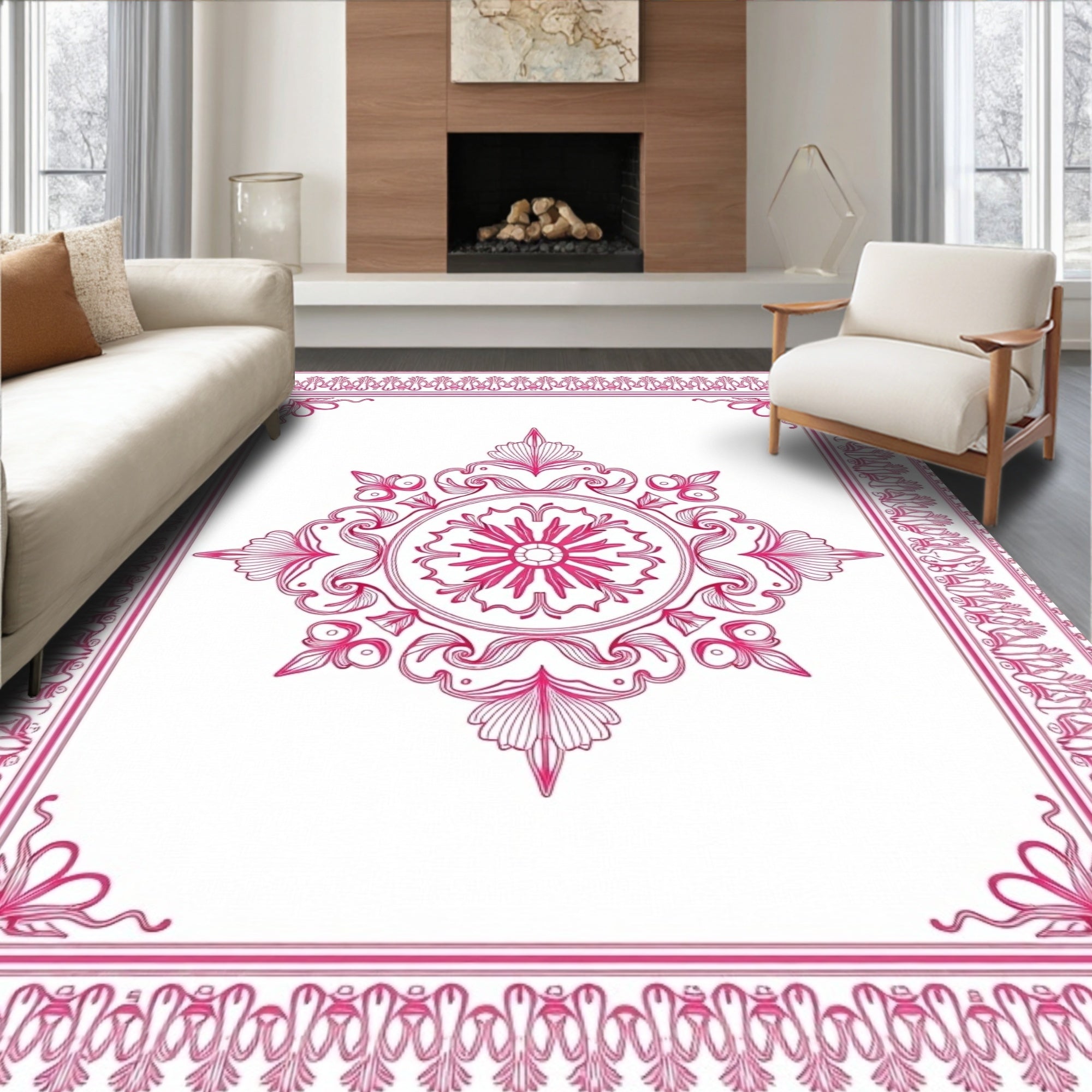 Flatwoven High Traffic Area Rug, Small Surface Displaying Ornate Floral Medallion and Lace Details, Non Slip, Stain Resistant, Washable Area Rugs for Living Room, Bedroom (Pink) Overview: