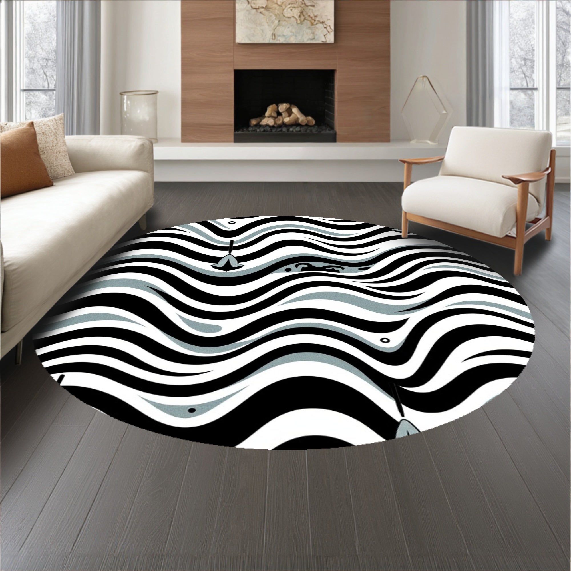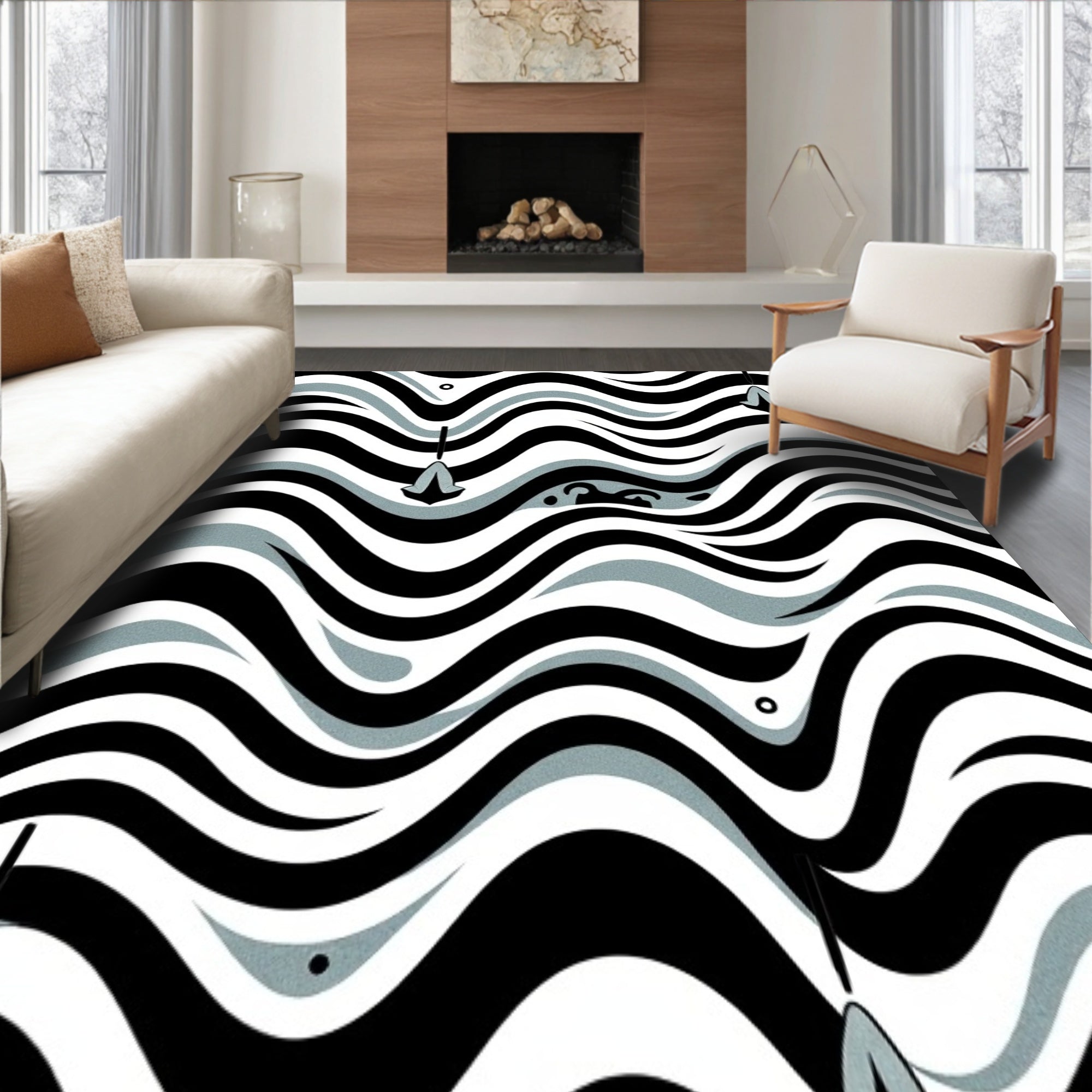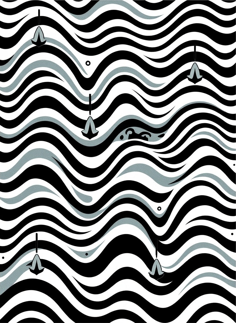 Sophisticated Zigzag Waves with Minimalist Symbol Accents (Black)