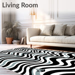 Flatwoven High Traffic Area Rug, Sophisticated Zigzag Waves with Minimalist Symbol Accents, Non Slip, Stain Resistant, Washable Area Rugs for Living Room, Bedroom (Black) Overview: