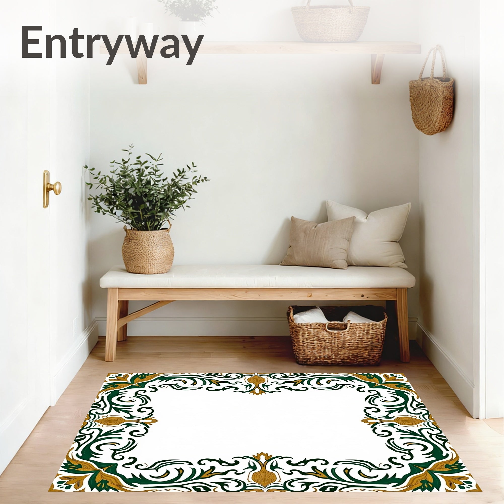 Flatwoven High Traffic Area Rug, Spring Meadow Fern Scrollwork with Floral Accents, Non Slip, Stain Resistant, Washable Area Rugs for Living Room, Bedroom (Green) Overview: