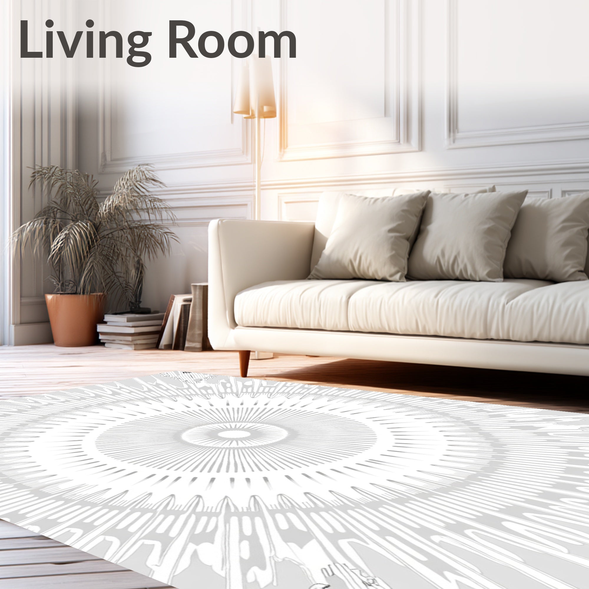 Flatwoven High Traffic Area Rug, Starburst Medallion with Radial Sunburst, Non Slip, Stain Resistant, Washable Area Rugs for Living Room, Bedroom (Gray) Overview: