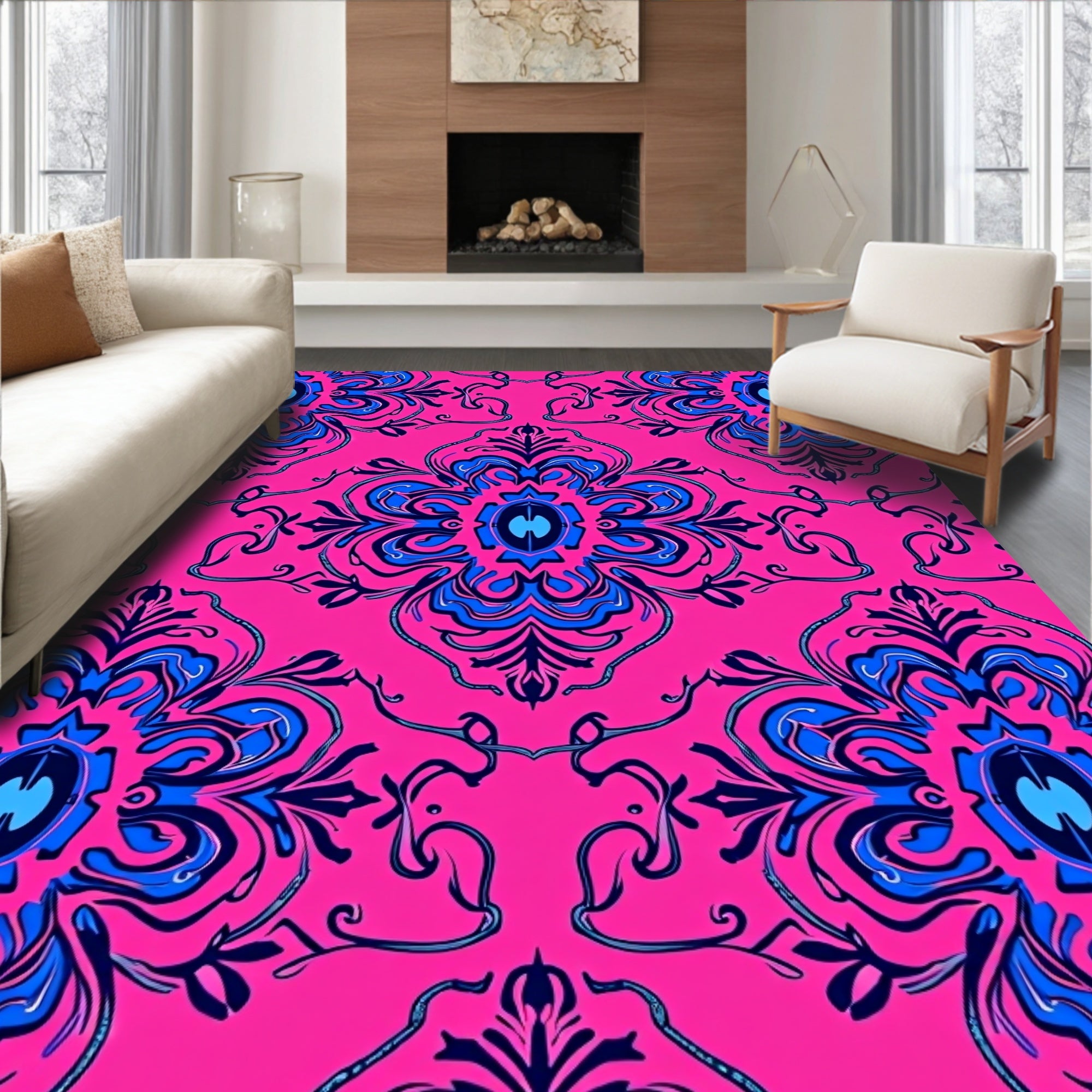 Flatwoven High Traffic Area Rug, Stunning Paisley Floral Abstract, Non Slip, Stain Resistant, Washable Area Rugs for Living Room, Bedroom (Pink) Overview: