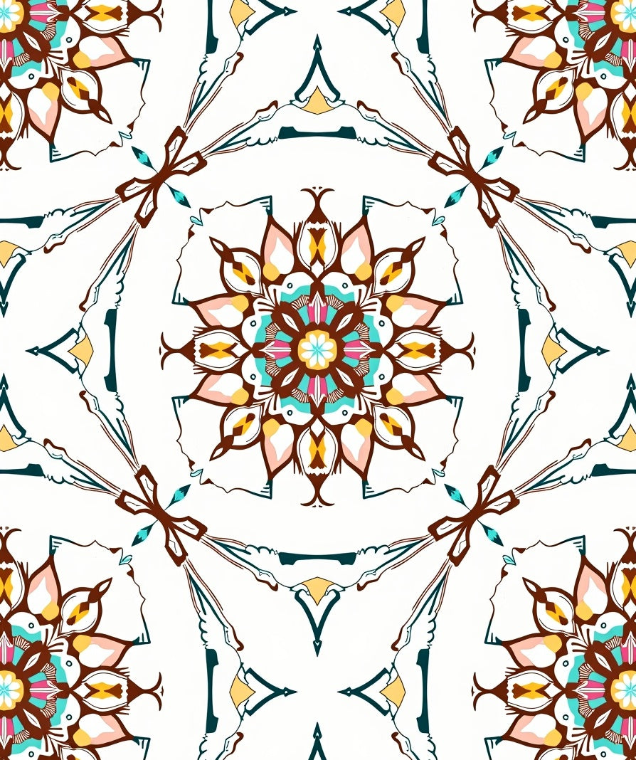 Subtle Interlocking Medallion with Boho Motifs (Brown)