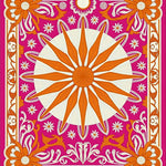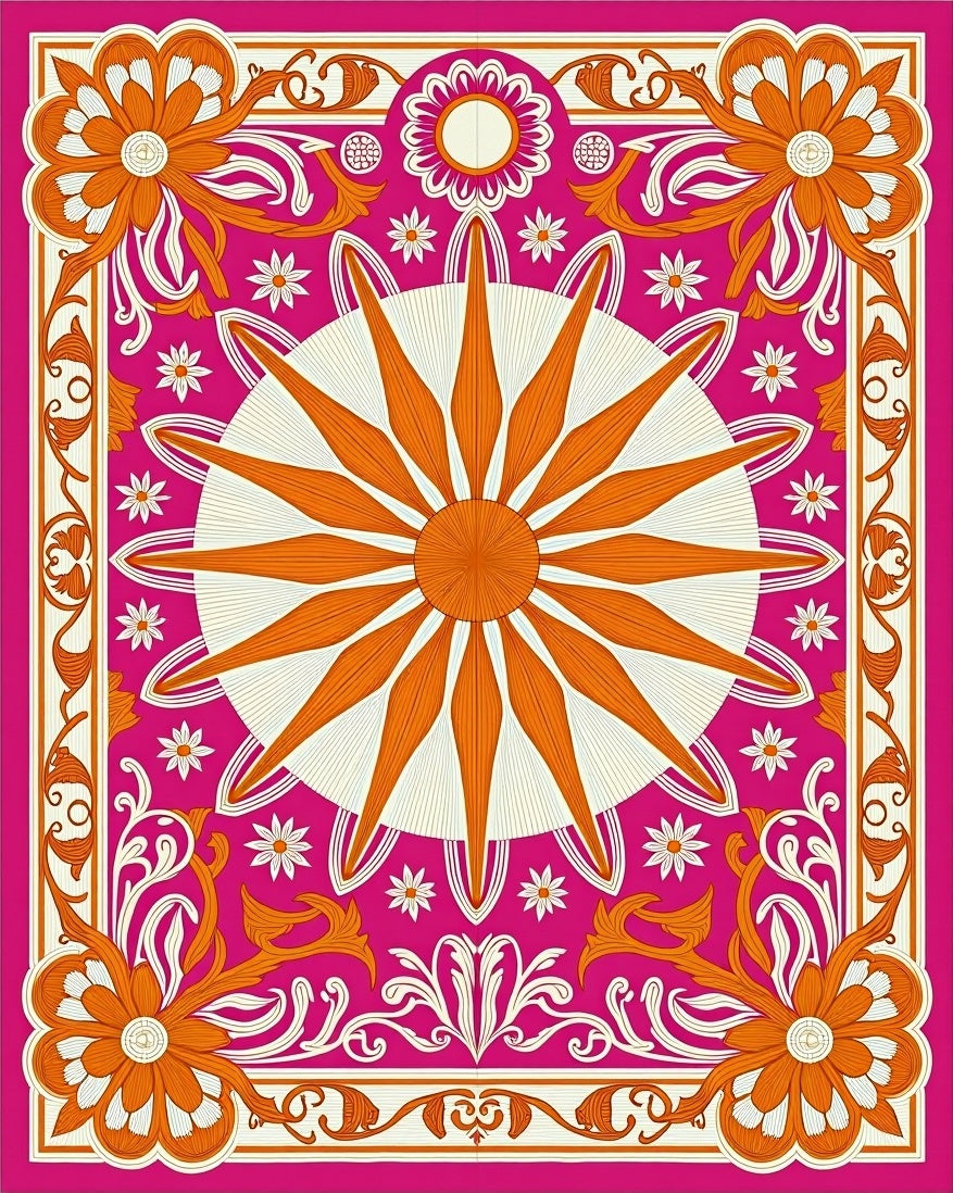 Sunburst Medallion Botanical with Ornate Flourish Motifs (Pink)