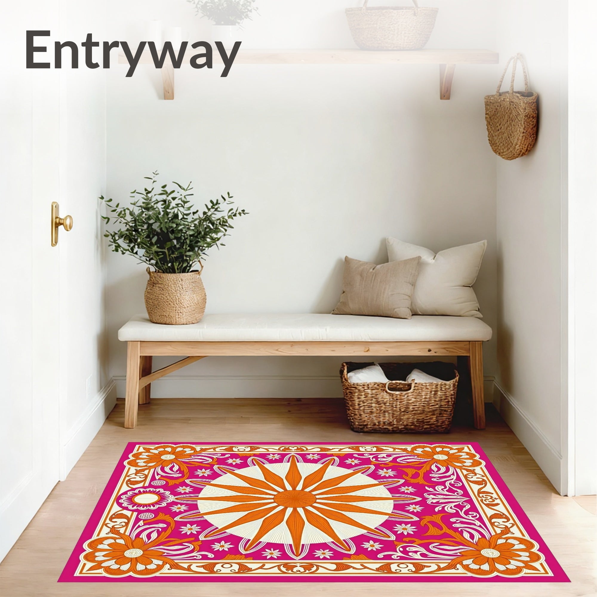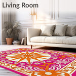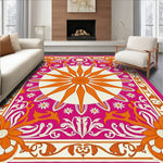 Flatwoven High Traffic Area Rug, Sunburst Medallion Botanical with Ornate Flourish Motifs, Non Slip, Stain Resistant, Washable Area Rugs for Living Room, Bedroom (Pink) Overview: