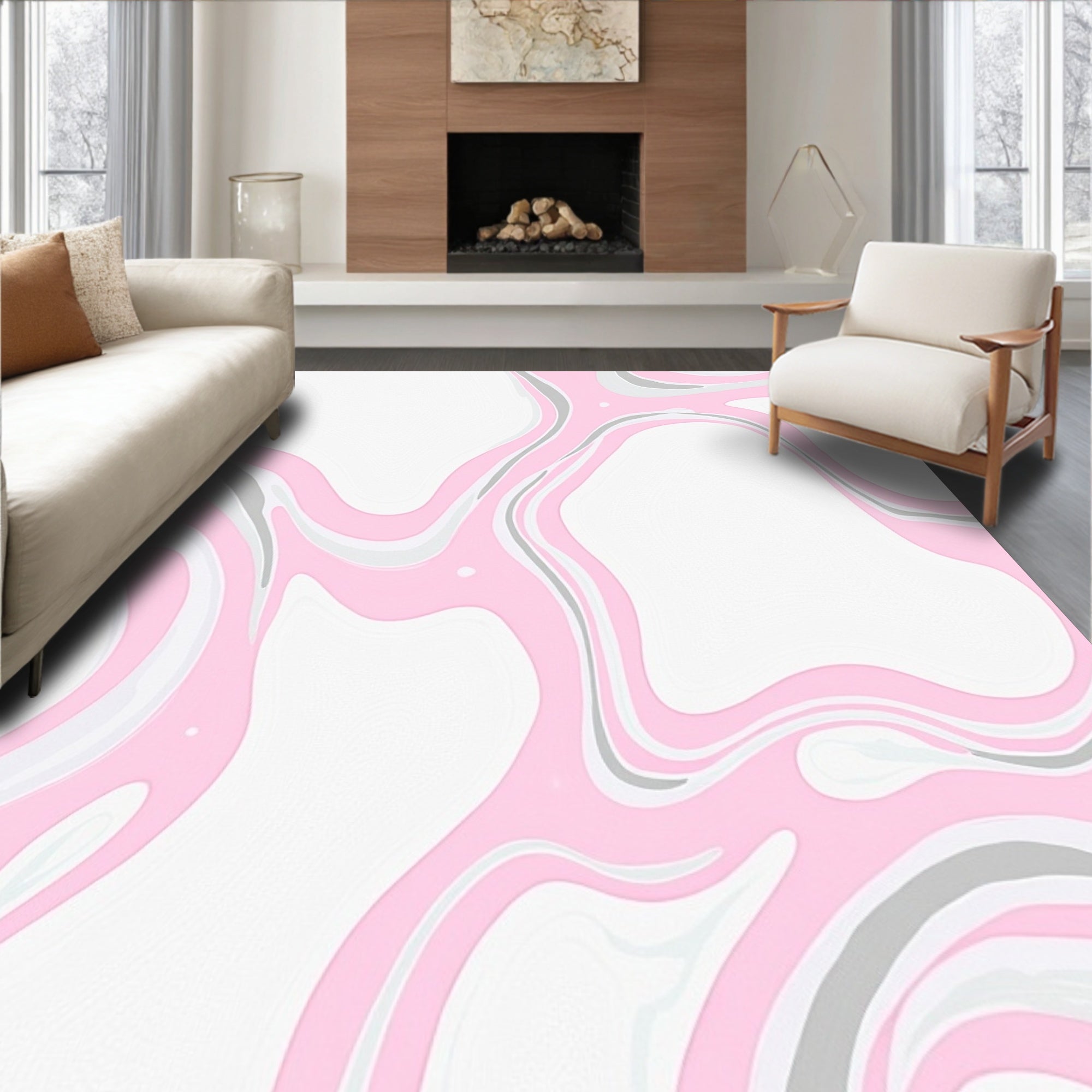 Swirled Marble Tie Dyed Abstract Watercolor Style Floor Covering (Pink)