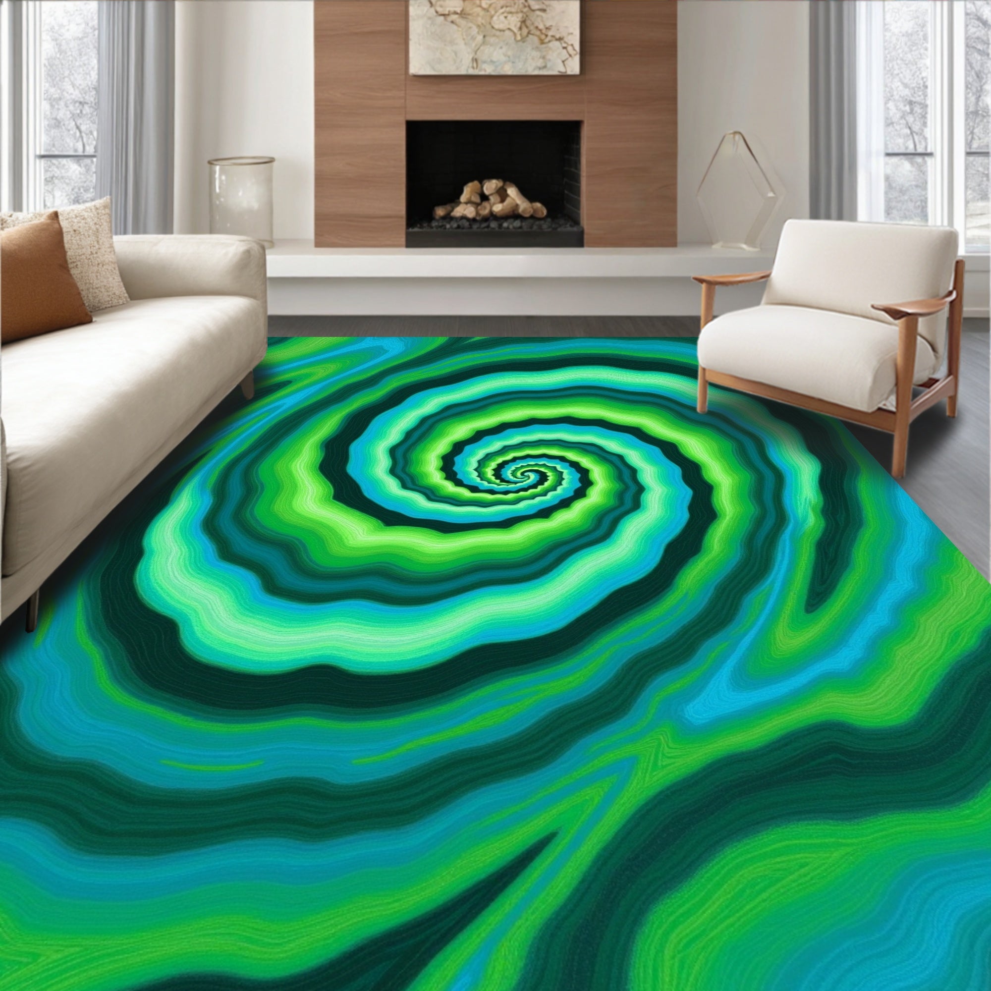 Swirling Vortex Spiral Waves Artistic Expression Indoor Floor Covering (Green)