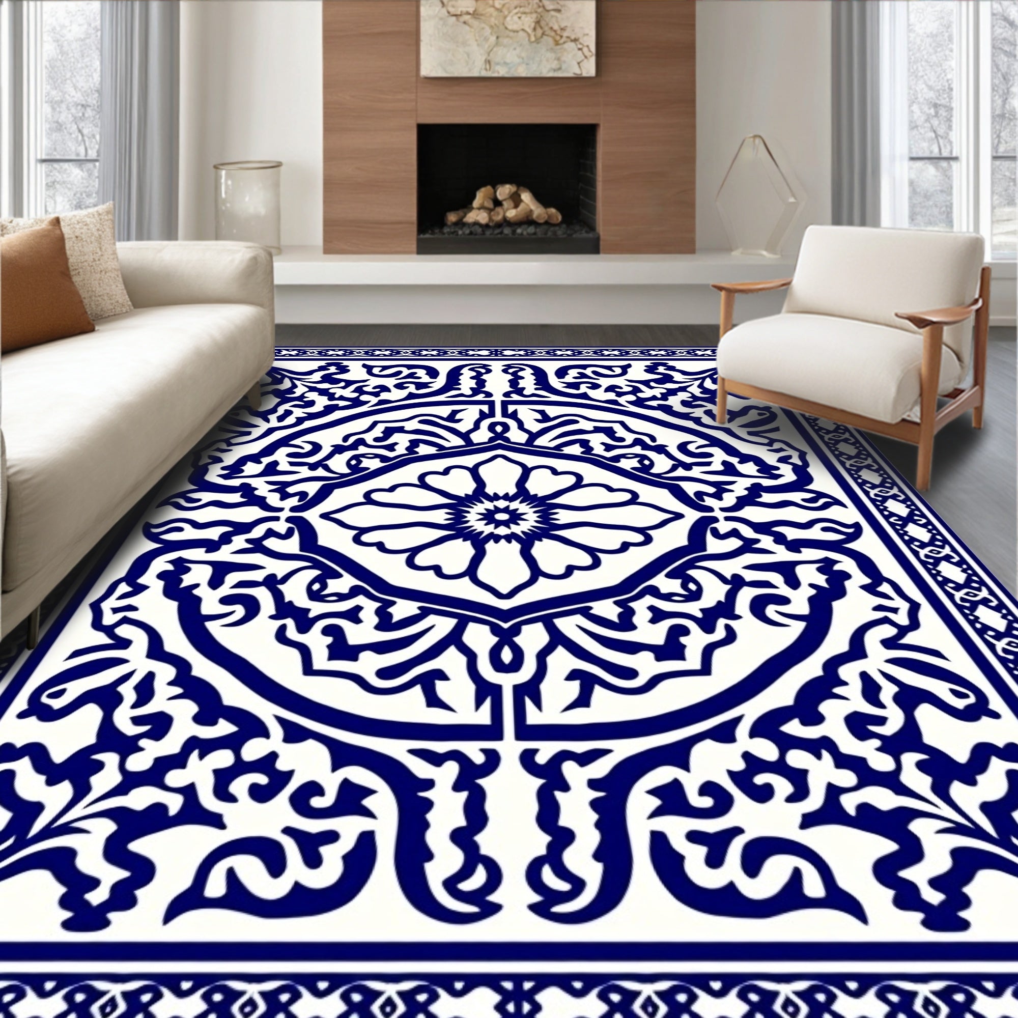 Flatwoven High Traffic Area Rug, Tile Inspired Intricate, Non Slip, Stain Resistant, Washable Area Rugs for Living Room, Bedroom (Blue) Overview: