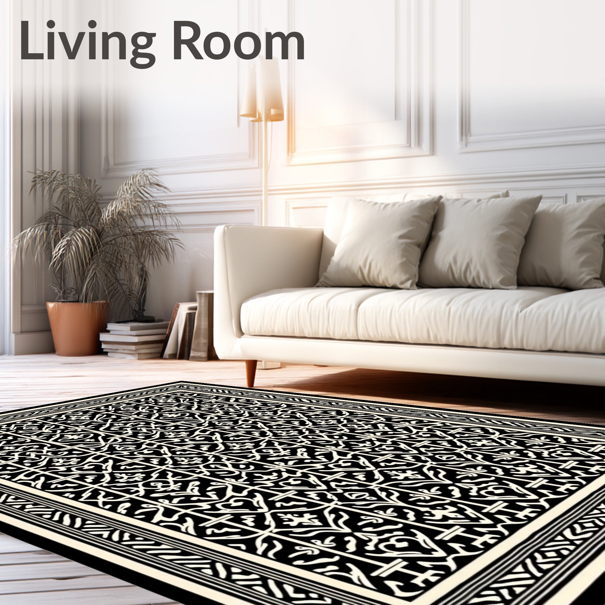 Flatwoven High Traffic Area Rug, Tile Inspired Machine Accent, Non Slip, Stain Resistant, Washable Area Rugs for Living Room, Bedroom (Black) Overview: