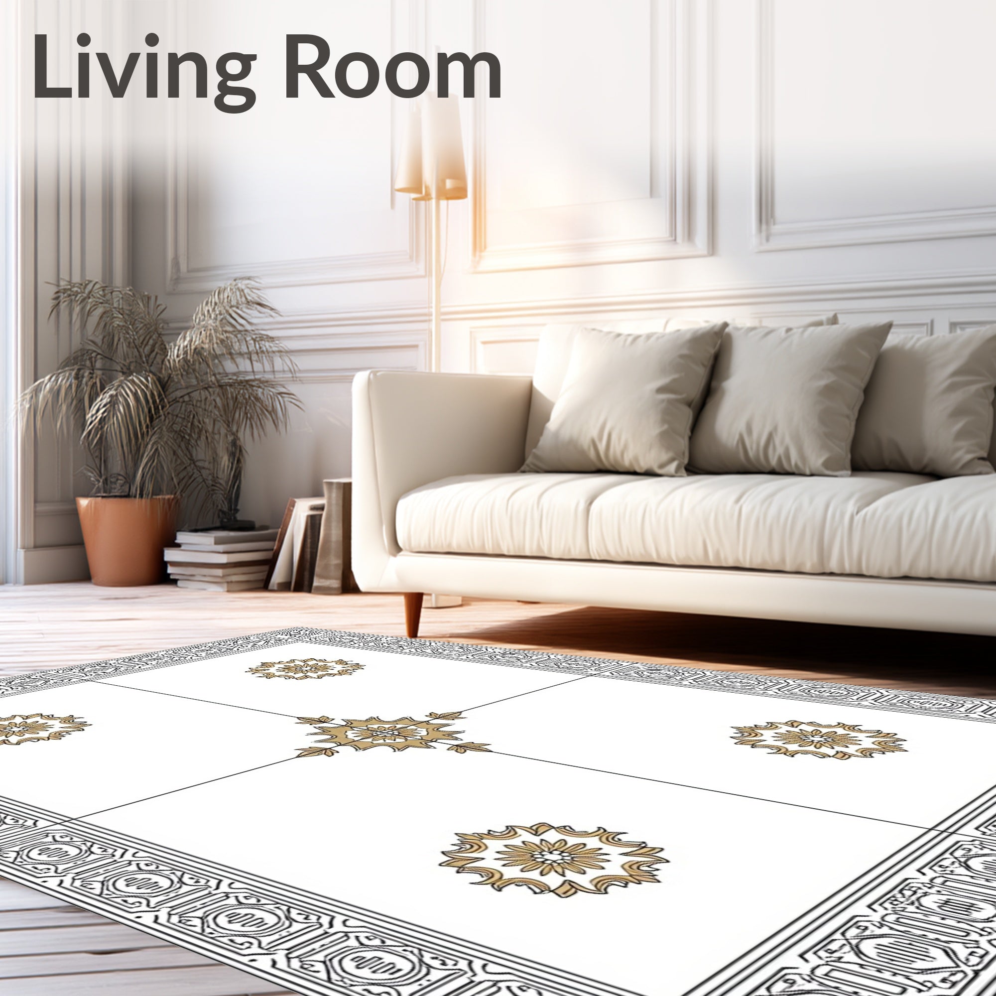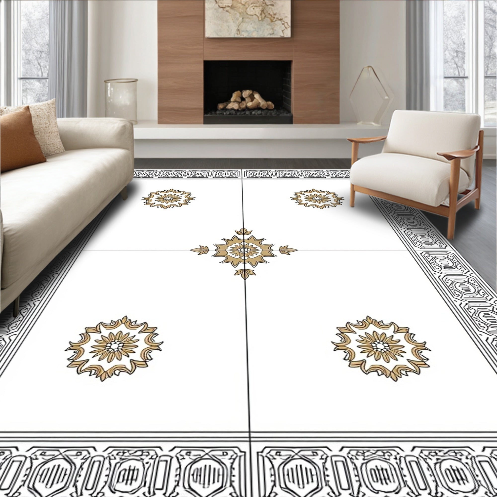 Tile Inspired Pile with Intricate Motifs (Beige)