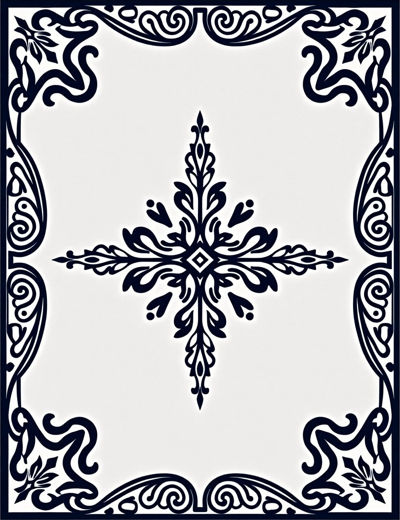 Timeless Bordered Damask Floral Scroll Symmetrical Artistic (Black)