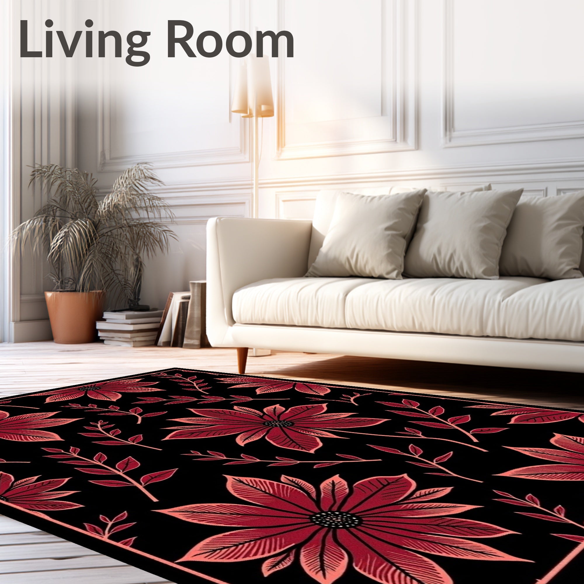 Flatwoven High Traffic Area Rug, Traditional Botanical Print Featuring Stylized Bloom Clusters, Non Slip, Stain Resistant, Washable Area Rugs for Living Room, Bedroom (Black) Overview:
