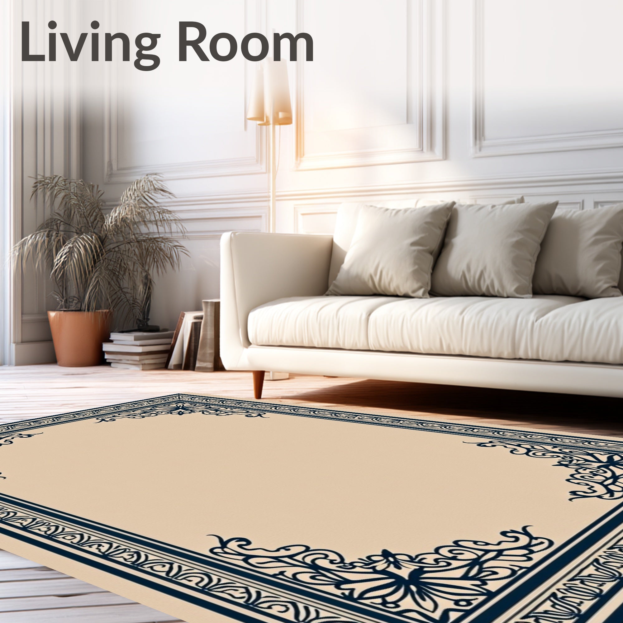 Flatwoven High Traffic Area Rug, Traditional Scrollwork Embellished Splendor, Non Slip, Stain Resistant, Washable Area Rugs for Living Room, Bedroom (Beige) Overview: