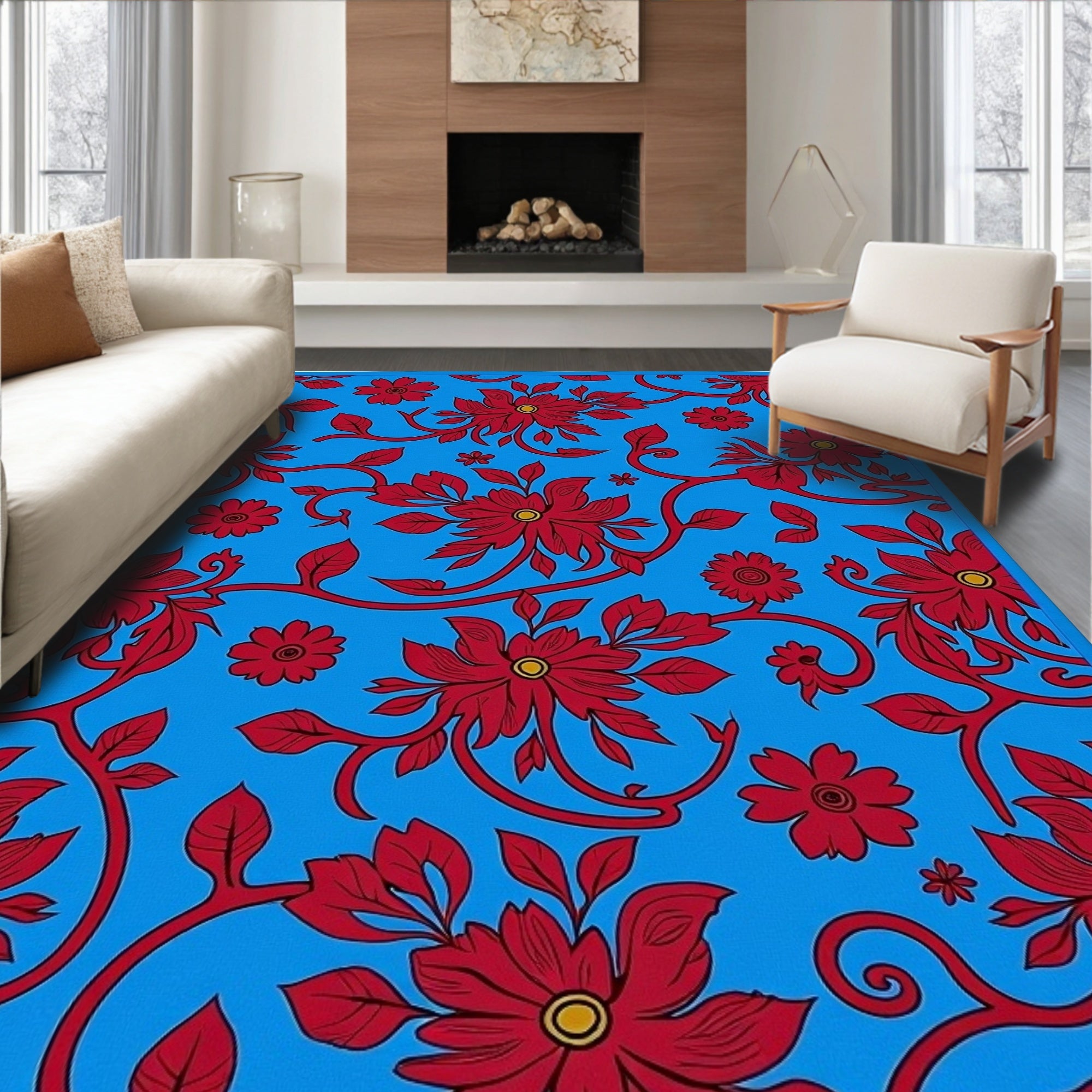 Flatwoven High Traffic Area Rug, Traditional Vine with Cascading Flower Clusters, Non Slip, Stain Resistant, Washable Area Rugs for Living Room, Bedroom (Blue) Overview: