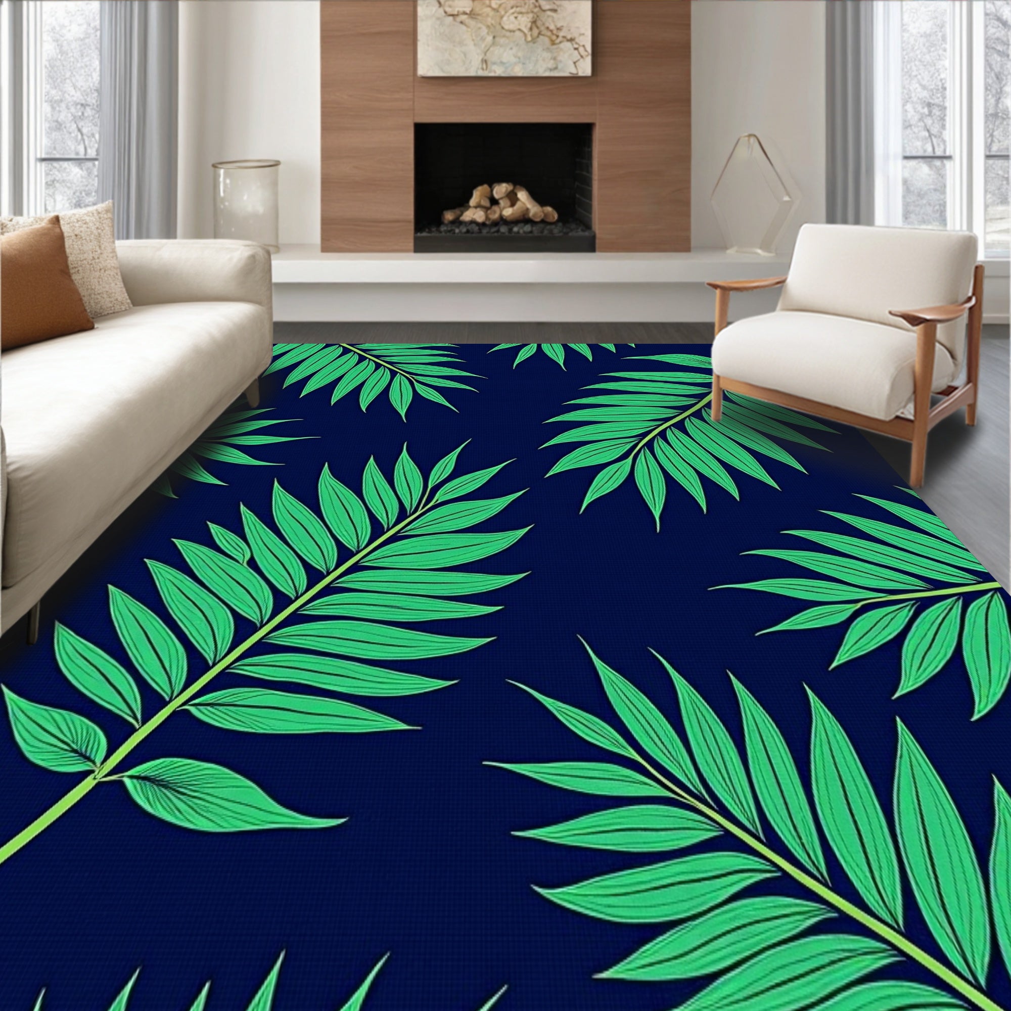 Flatwoven High Traffic Area Rug, Tropical Jungle Fern Rainforest Exotic Retreat, Non Slip, Stain Resistant, Washable Area Rugs for Living Room, Bedroom (Green) Overview: