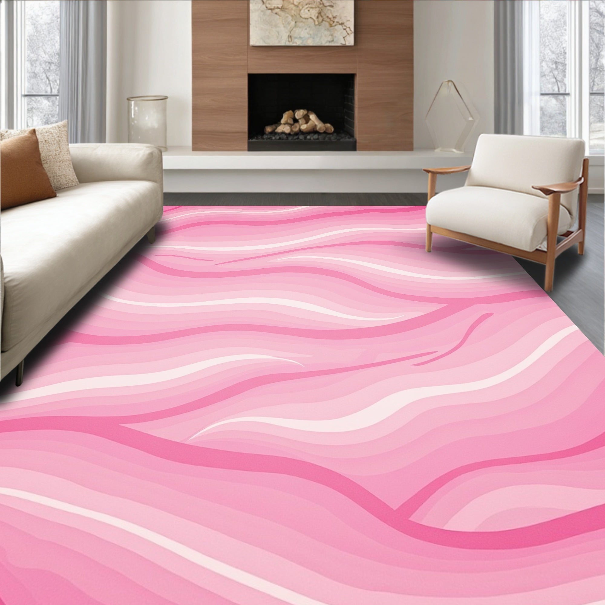 Flatwoven High Traffic Area Rug, Velvet Cloud Symphony, Non Slip, Stain Resistant, Washable Area Rugs for Living Room, Bedroom (Pink) Overview: