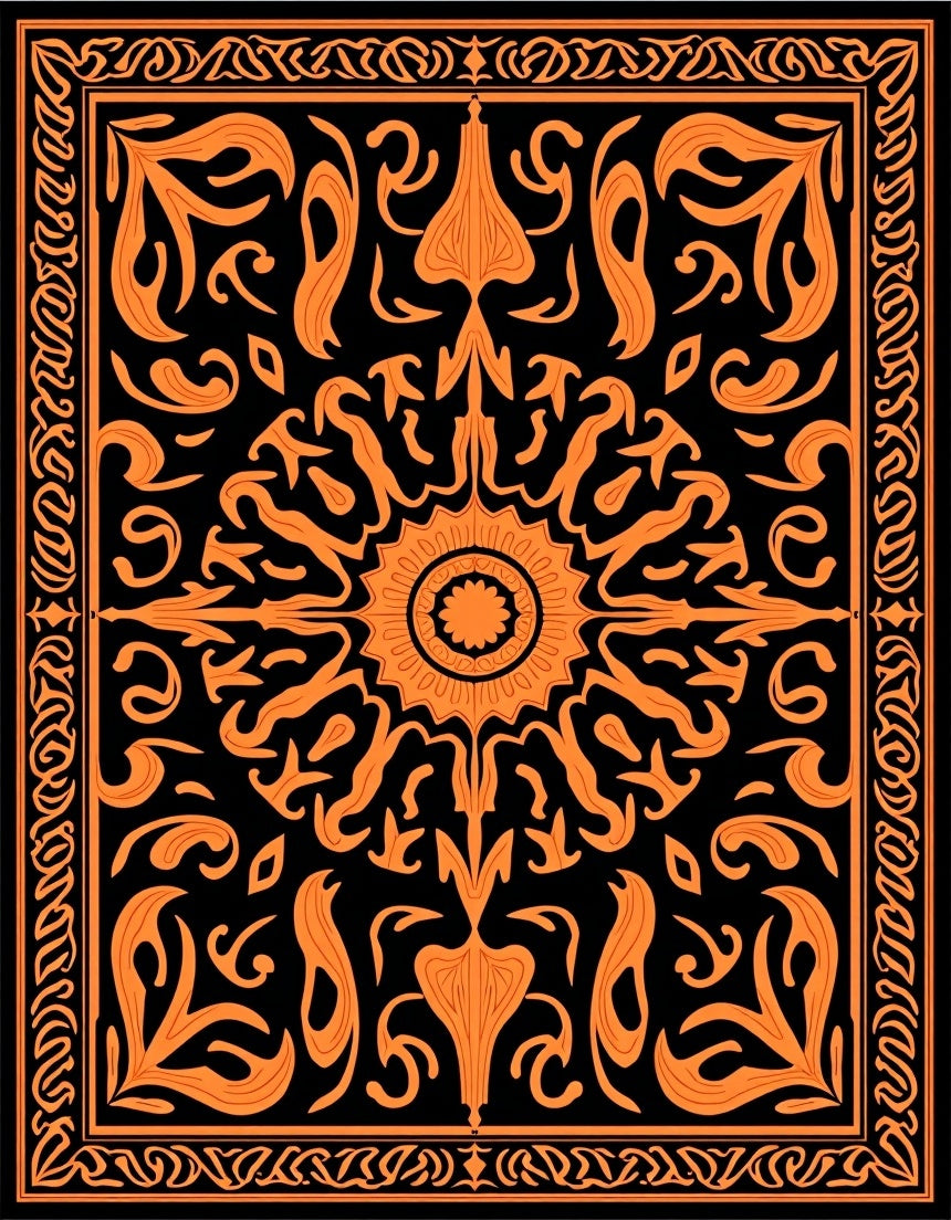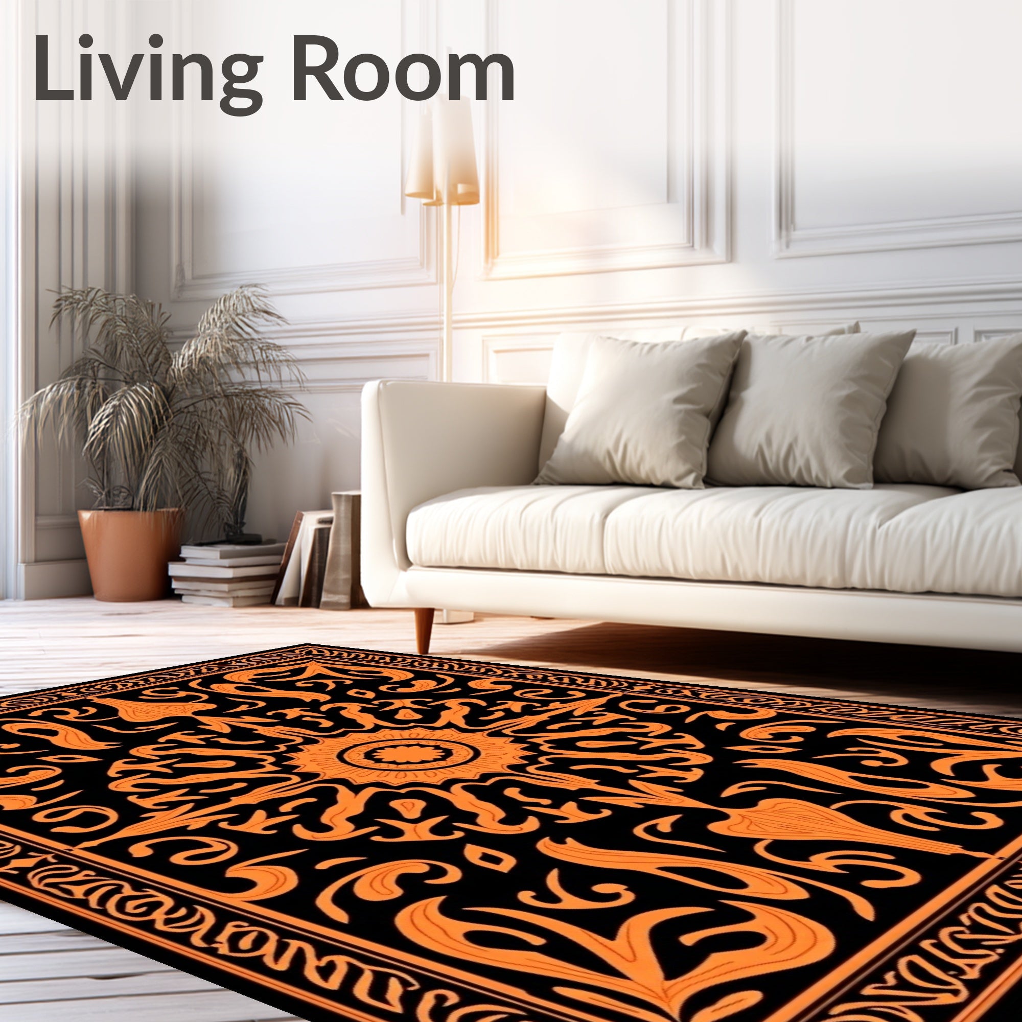 Flatwoven High Traffic Area Rug, Vibrant Tangerine Swirl Medallion Decorative Accent, Non Slip, Stain Resistant, Washable Area Rugs for Living Room, Bedroom (Black) Overview: