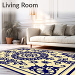 Victorian Damask Scrolled Large Accent Floor Covering (Beige)