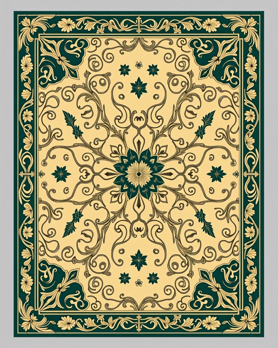 Flatwoven High Traffic Area Rug, Victorian Medallion Trellis with Ornate Scrollwork and Floral Flourishes, Non Slip, Stain Resistant, Washable Area Rugs for Living Room, Bedroom (Beige) Overview: