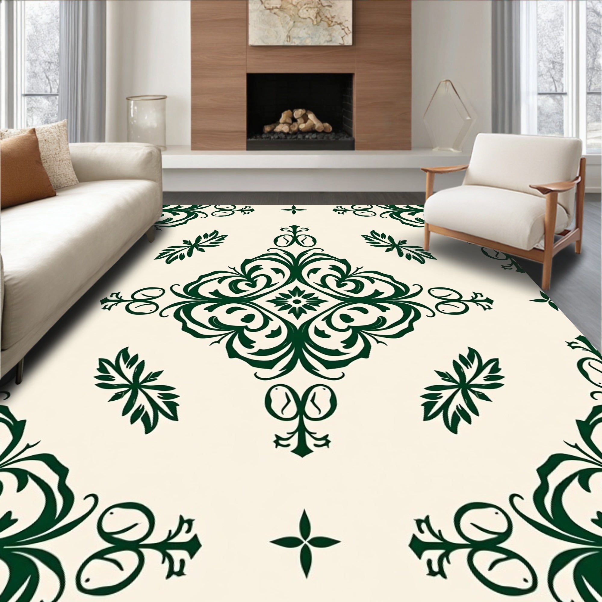 Flatwoven High Traffic Area Rug, Vintage Botanical Damask Medallion, Non Slip, Stain Resistant, Washable Area Rugs for Living Room, Bedroom (Green) Overview:
