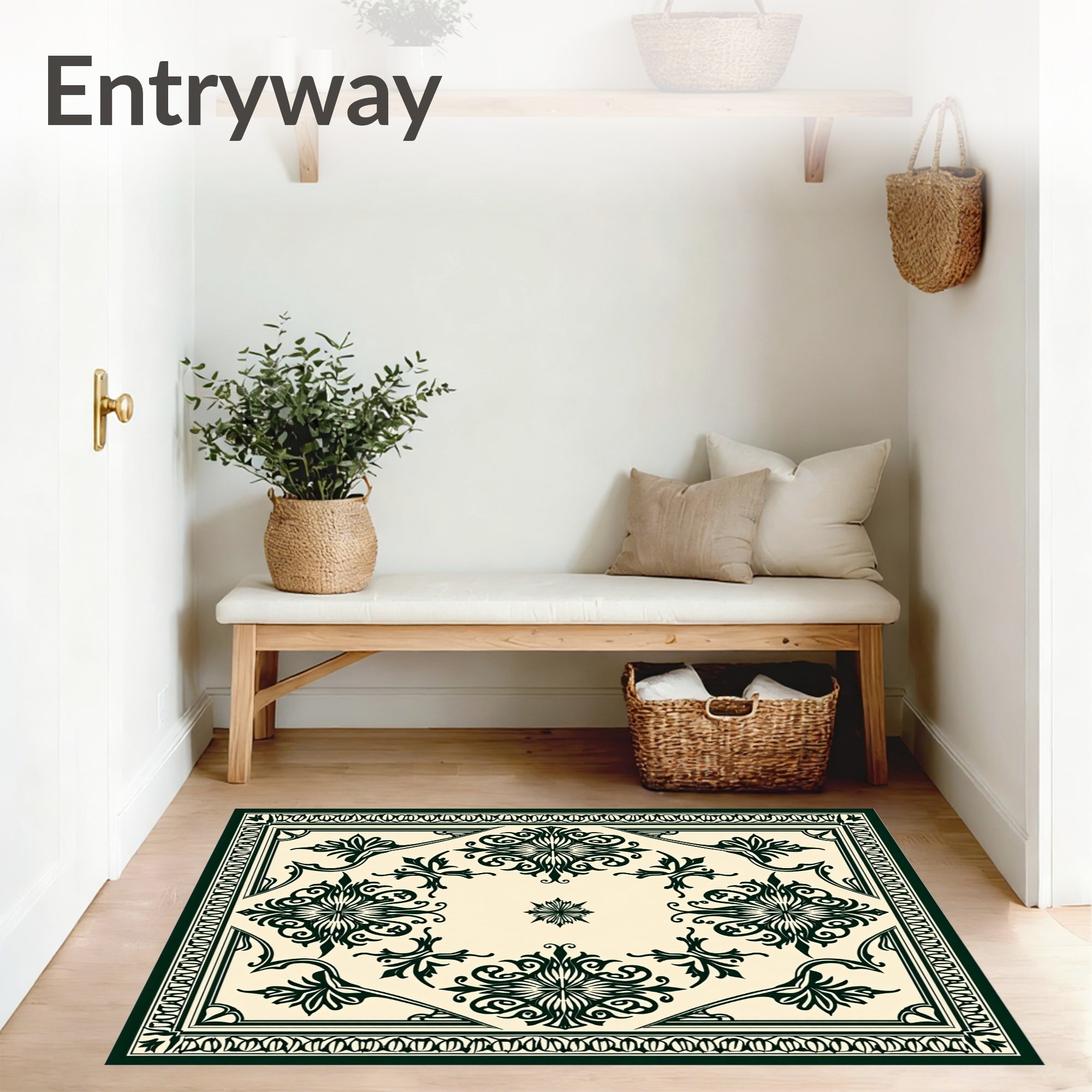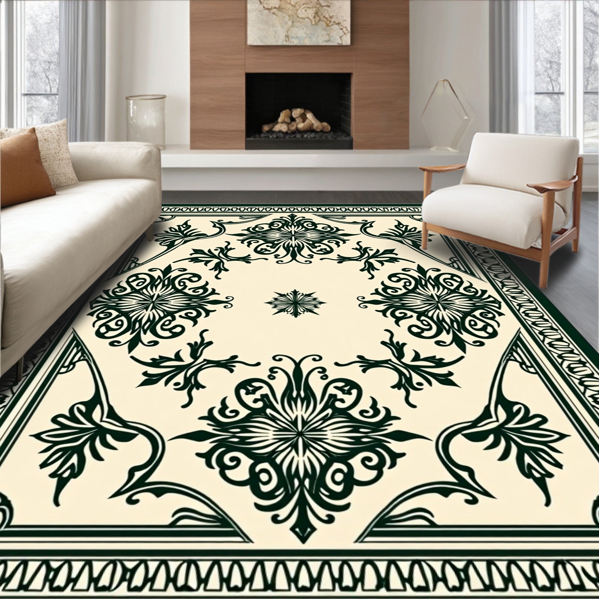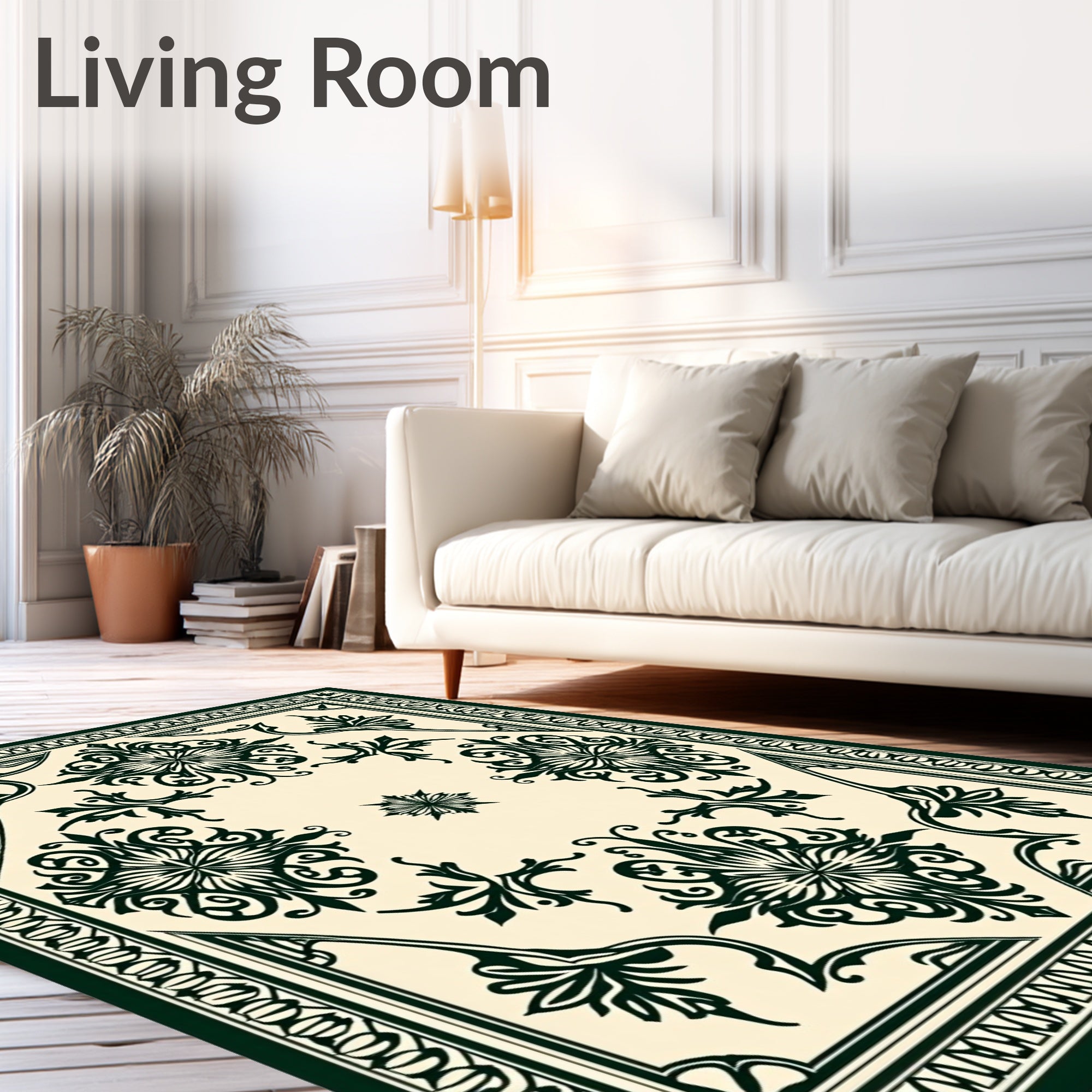 Flatwoven High Traffic Area Rug, Vintage Damask Scroll Anti Slip, Non Slip, Stain Resistant, Washable Area Rugs for Living Room, Bedroom (Beige) Overview: