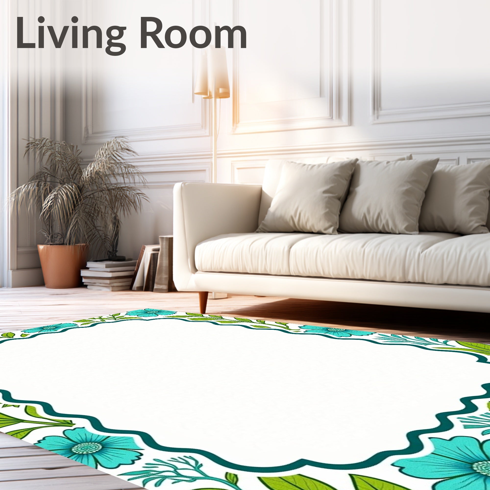 Flatwoven High Traffic Area Rug, Vintage Tropical Bloom Scallop Edge Artistry, Non Slip, Stain Resistant, Washable Area Rugs for Living Room, Bedroom (Blue) Overview: