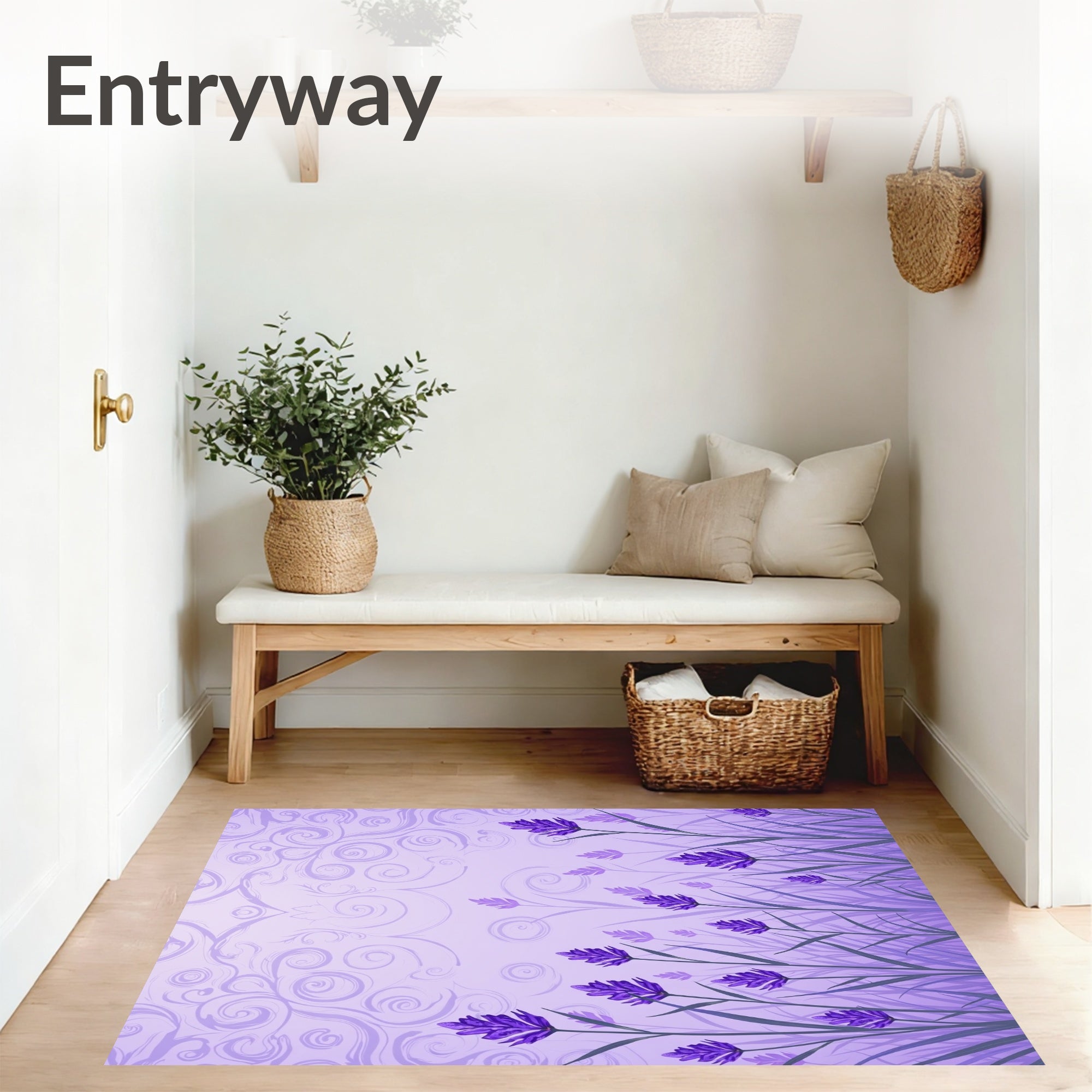Flatwoven High Traffic Area Rug, Whimsical Fairy Tale Meadow Highlighting Magical Appearance, Non Slip, Stain Resistant, Washable Area Rugs for Living Room, Bedroom (Purple) Overview: