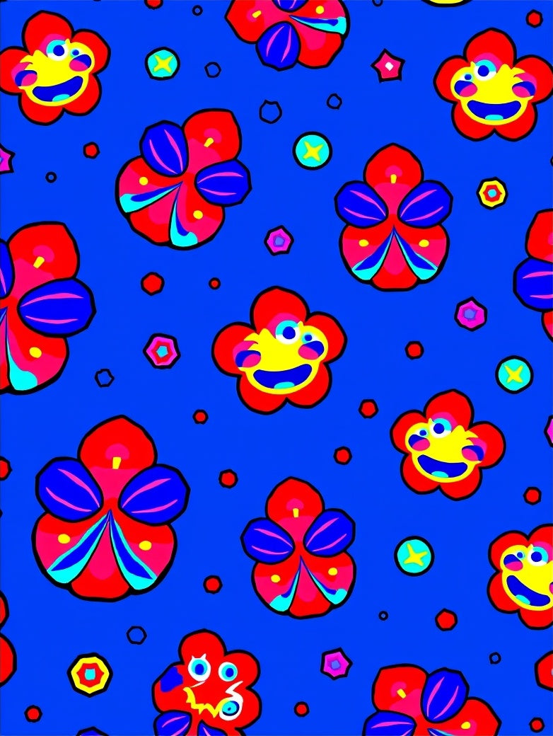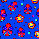 Whimsical Floral Array with Radiant Happy Faces and Dynamic Petal Arrangement (Blue)