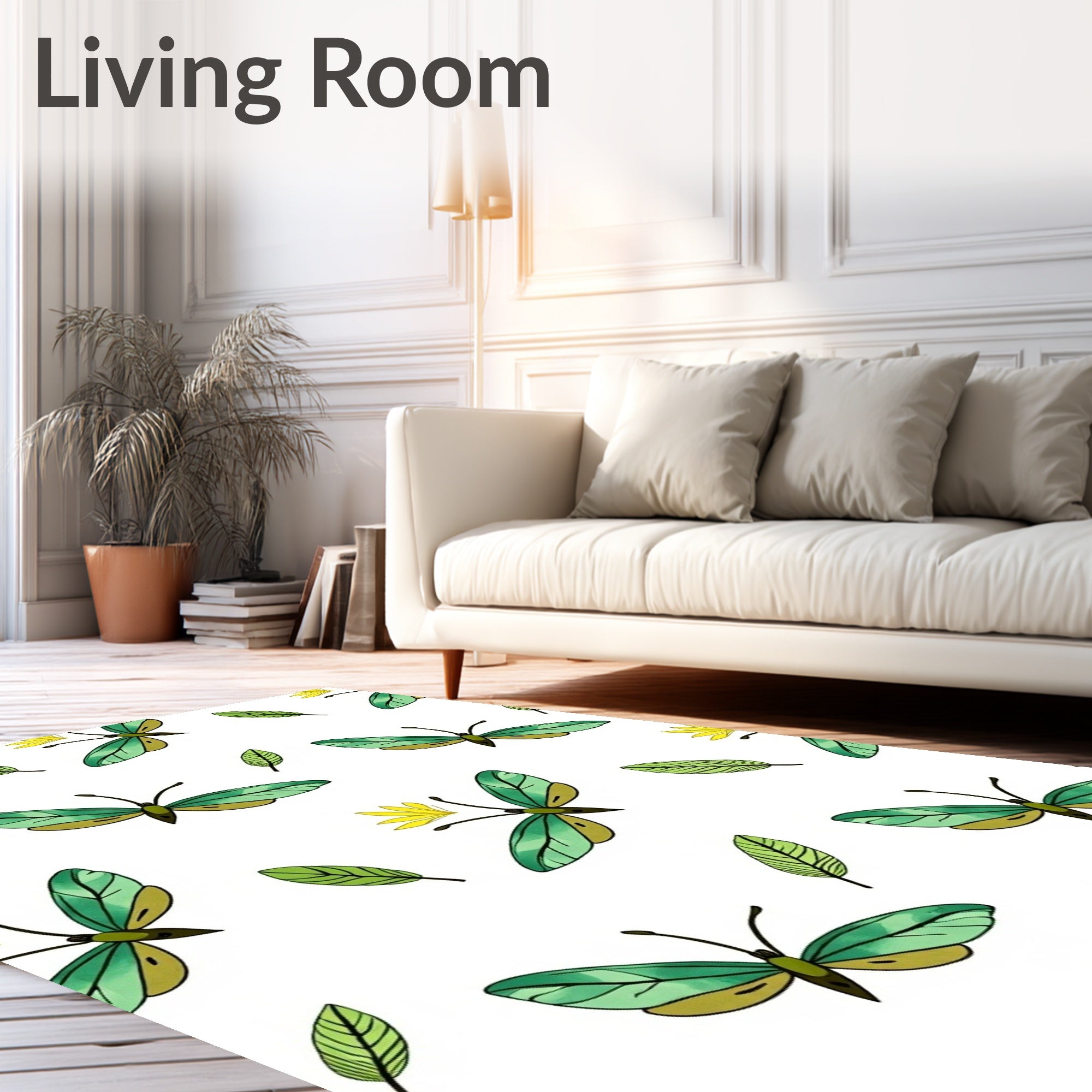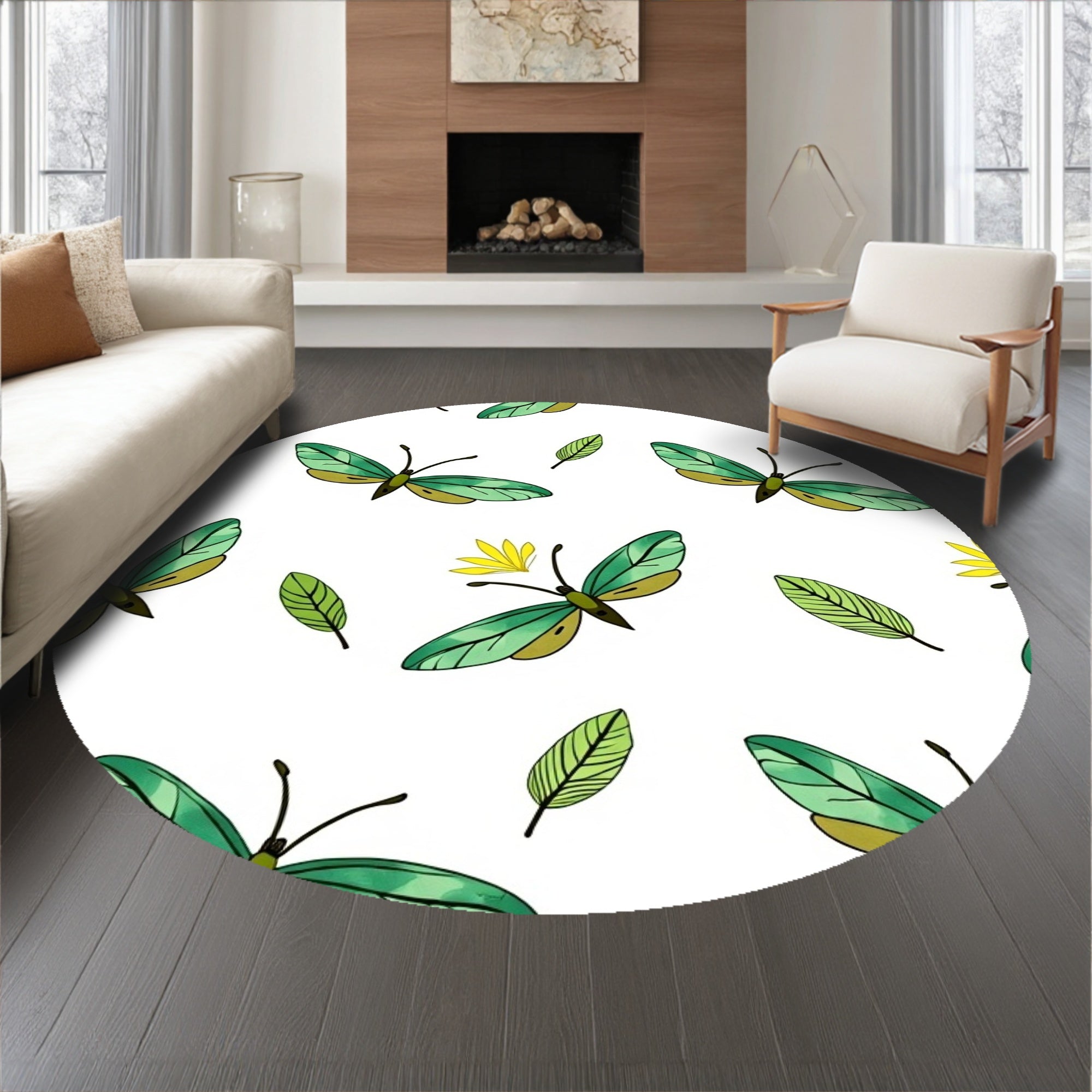 Flatwoven High Traffic Area Rug, Wilderness Insect Symphony Displaying Elegant Flying Creatures, Non Slip, Stain Resistant, Washable Area Rugs for Living Room, Bedroom (Green) Overview: