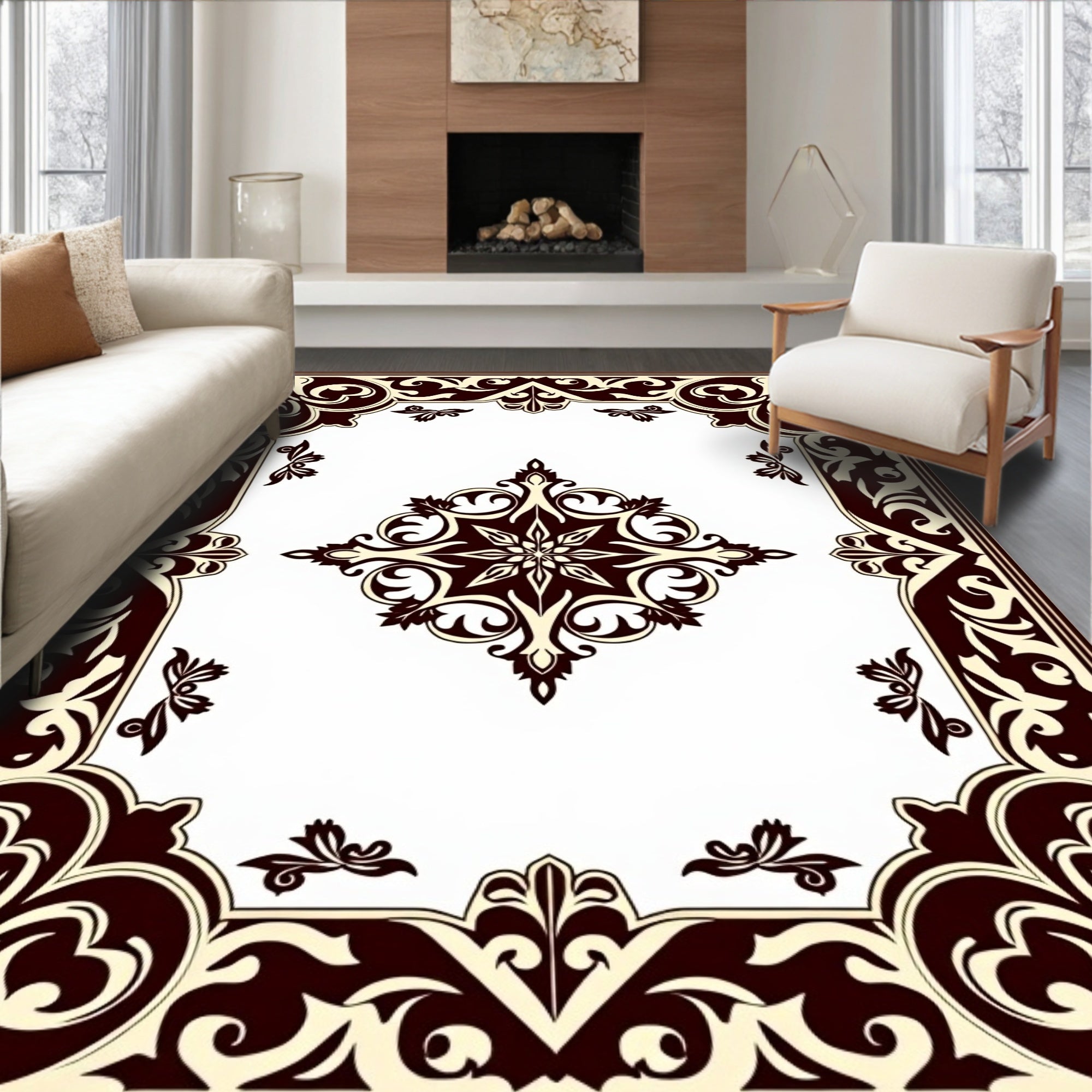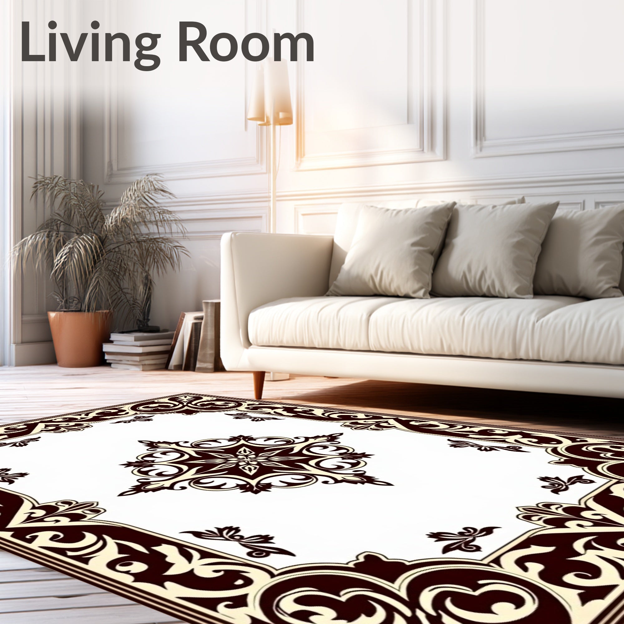 Flatwoven High Traffic Area Rug, with Floral Scrollwork and Interlocking Lattice, Non Slip, Stain Resistant, Washable Area Rugs for Living Room, Bedroom (Brown) Overview: