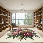Rich Burgundy Pink Peony Floral Bouquet Rug