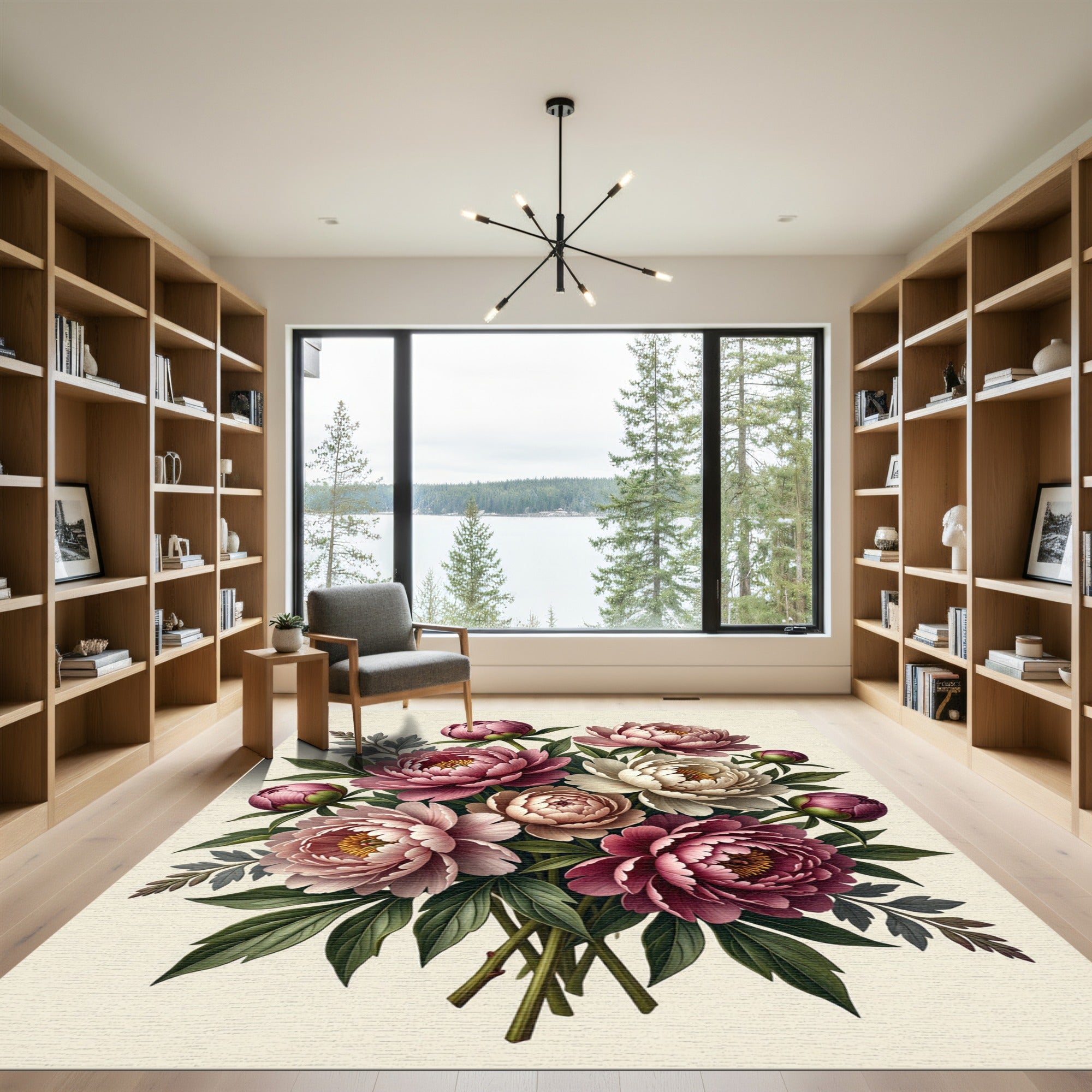 Drawing inspiration from the lush, painterly tradition of 18th-century botanical illustrations and the romantic sensibilities of English garden design, this rug is a visual ode to the ephemeral beauty of the peony. The blossoms bloom with a deliberate, velvet-soft intensity against a serene, cream-colored expanse, capturing the same storied spirit of Dutch Golden Age floral still-lifes, yet rendered for the contemporary home. It is a piece for the soul that seeks sanctuary; step onto this scene, and the room softens, the chaos of the day yields to a hushed, floral stillness. Walls seem to exhale, and the floor transforms into a curated tableau of living color and gentle foliage. This is not merely an area rug—it is a grounding anchor for the heart-led homebuilder who understands that enduring beauty is the ultimate luxury. Walk upon poetry. Live in reverence.