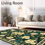 Flatwoven High Traffic Area Rug, Abstract Boho Floral, Non Slip, Stain Resistant, Washable Area Rugs for Living Room, Bedroom (Dark Green) Overview:
