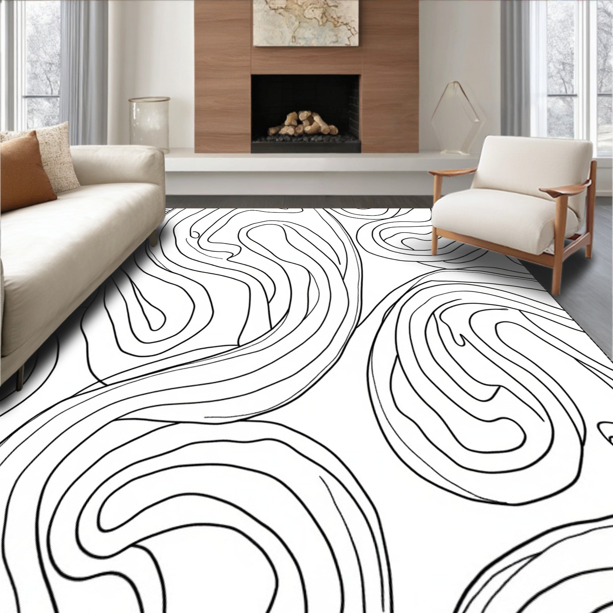 Flatwoven High Traffic Area Rug, Abstract Boho Wave Motif with Tape Style Highlights, Non Slip, Stain Resistant, Washable Area Rugs for Living Room, Bedroom (Black) Overview:
