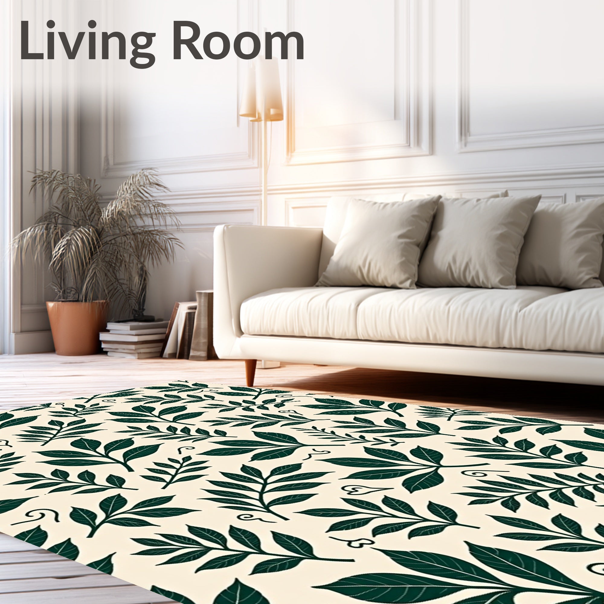 Abstract Botanical Leaf Motif Anti Skid Indoor(Ivory)