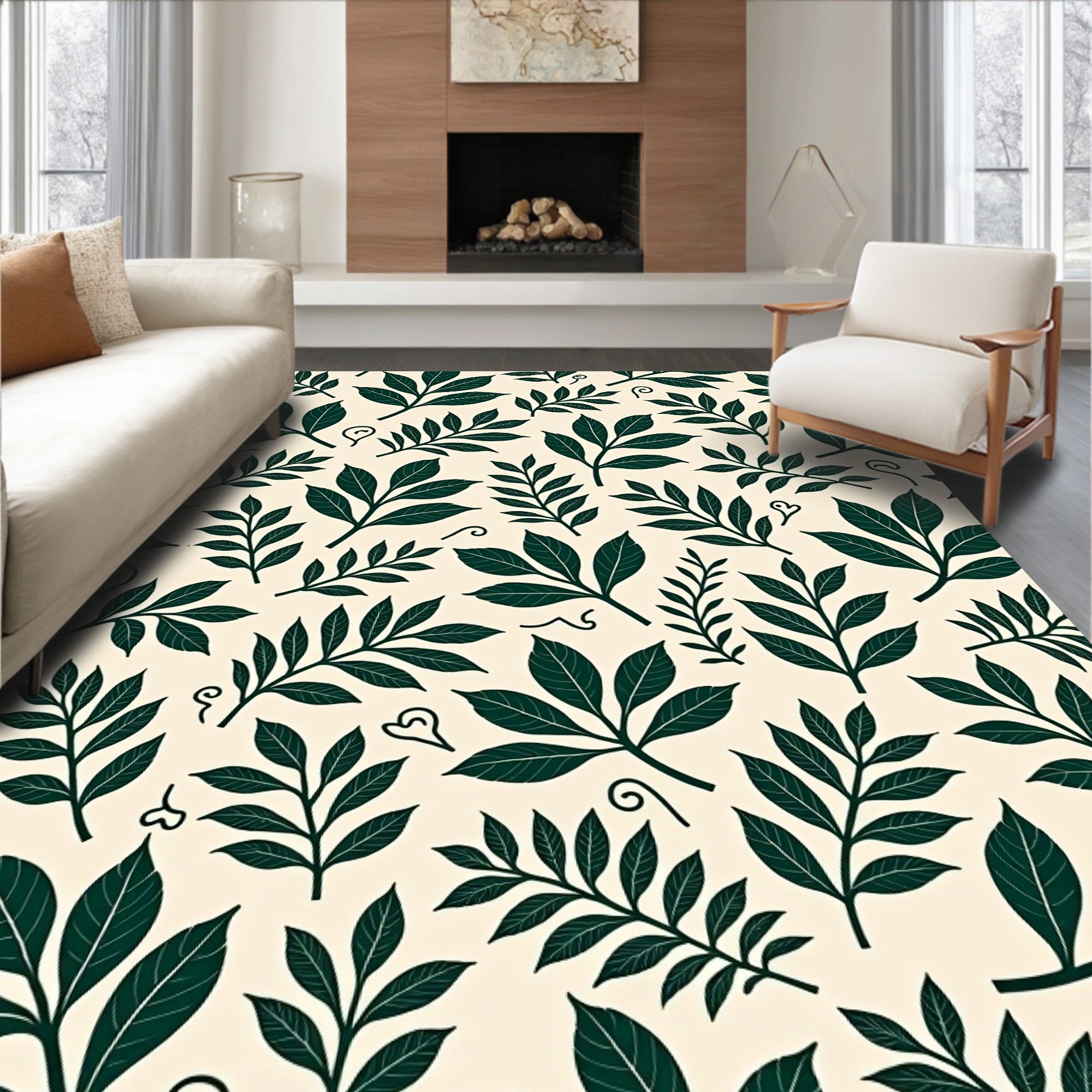 Flatwoven High Traffic Area Rug, Abstract Botanical Leaf Motif Anti Skid Indoor, Non Slip, Stain Resistant, Washable Area Rugs for Living Room, Bedroom (Ivory) Overview: