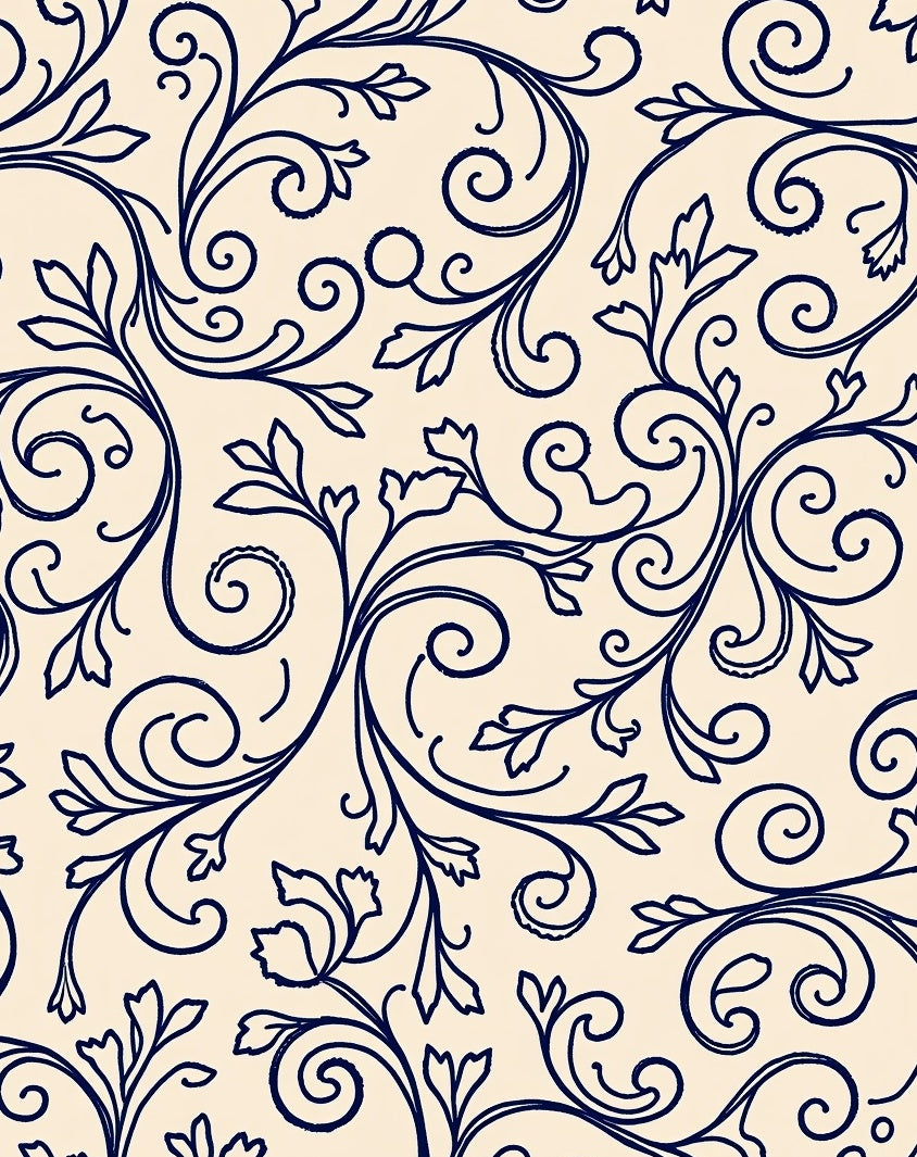 Abstract Botanical Scrolls with Flowing Interlocking Vines(Beige)