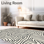 Flatwoven High Traffic Area Rug, Abstract Broken Ladder Featuring Cascading Monochrome Steps, Non Slip, Stain Resistant, Washable Area Rugs for Living Room, Bedroom (Black) Overview: