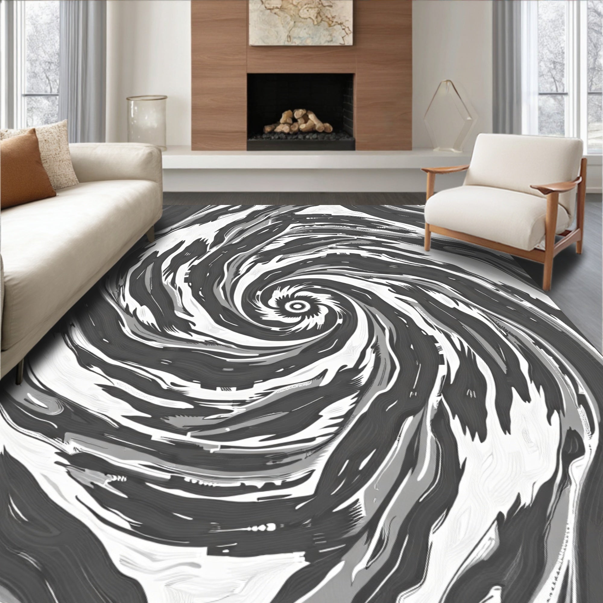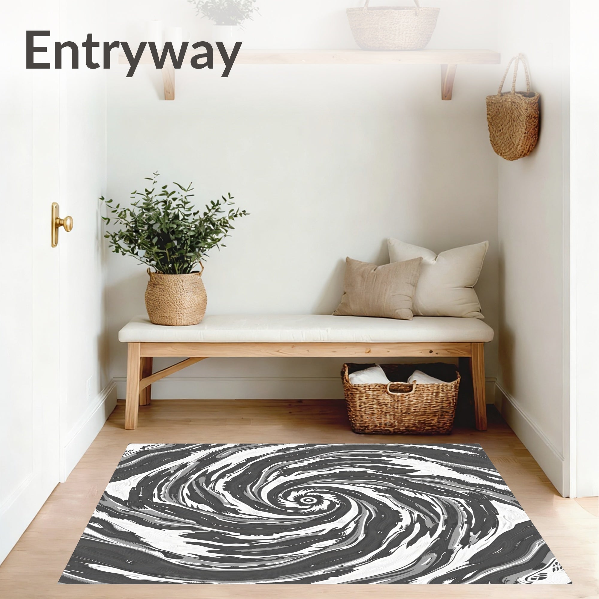 Flatwoven High Traffic Area Rug, Abstract Brushstroke Design Artistic with Flowing, Non Slip, Stain Resistant, Washable Area Rugs for Living Room, Bedroom (Black) Overview: