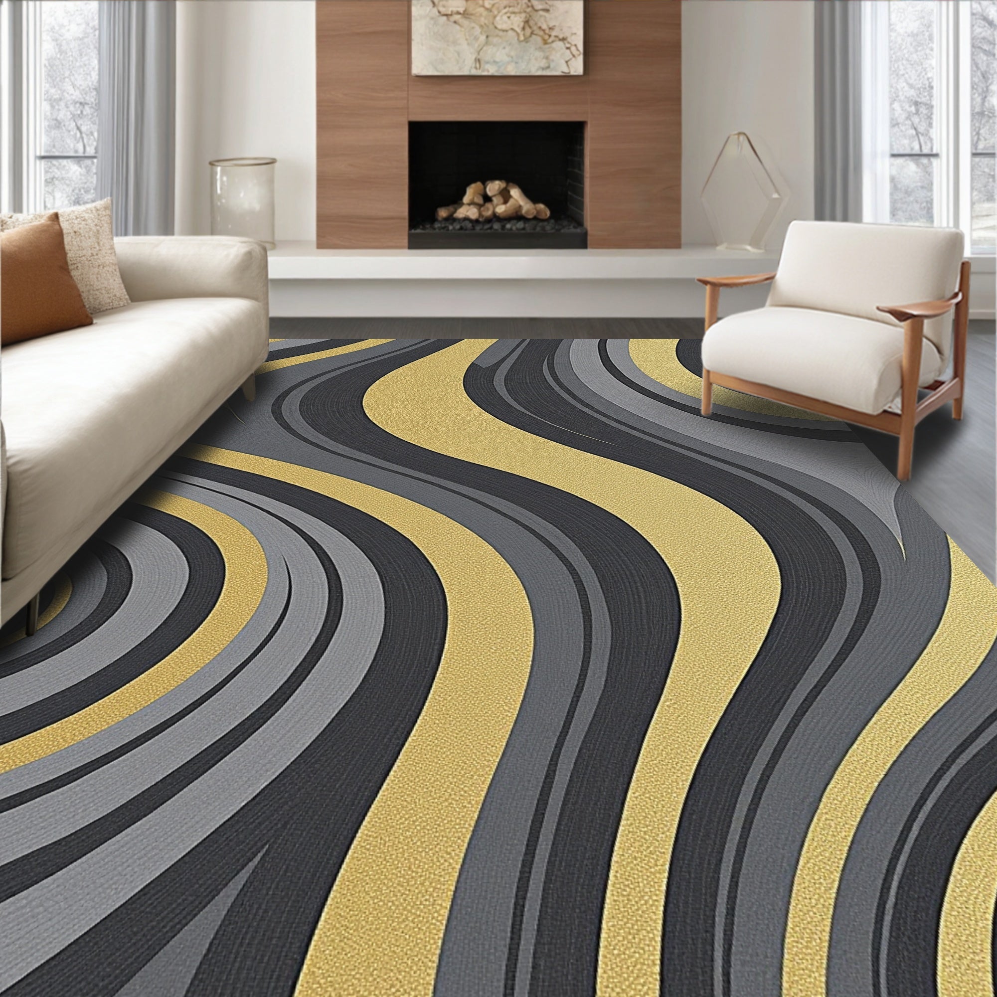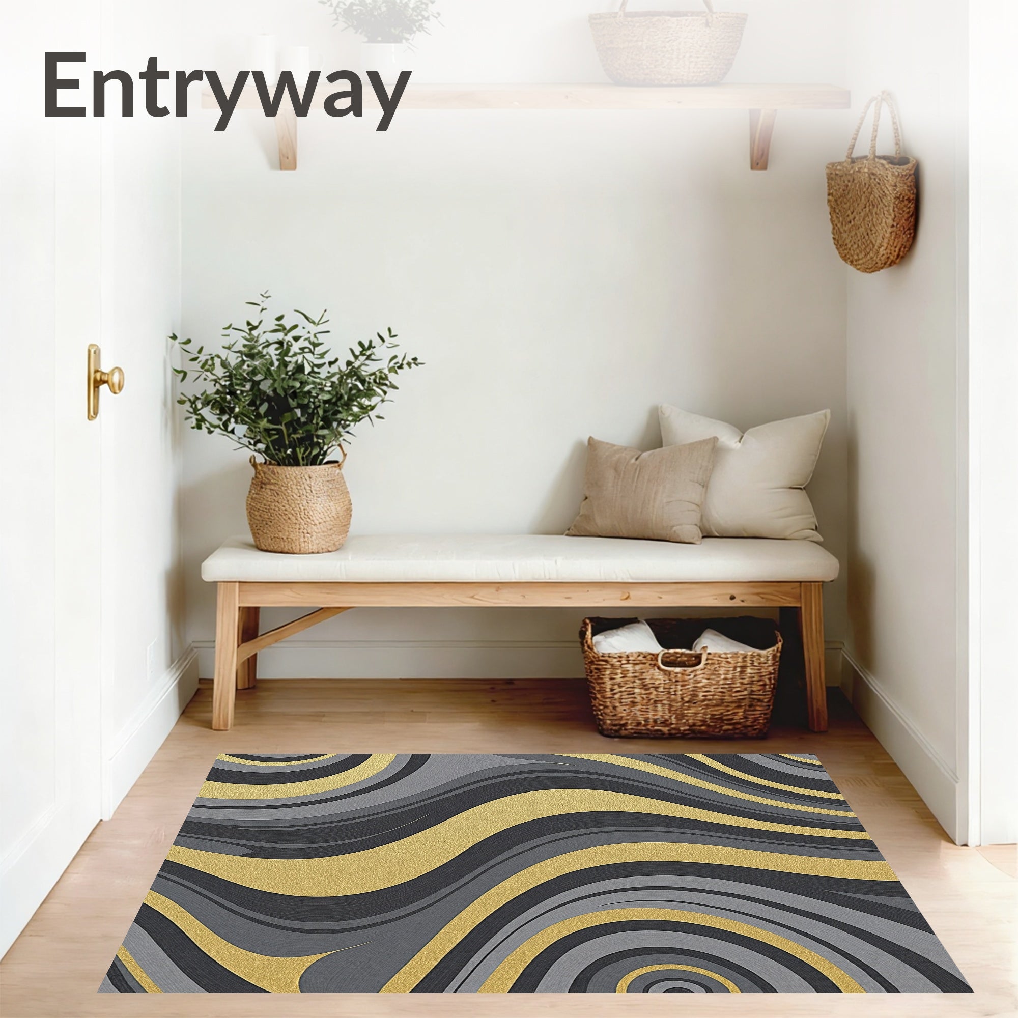 Flatwoven High Traffic Area Rug, Abstract Brushstroke Ripple Mosaic, Non Slip, Stain Resistant, Washable Area Rugs for Living Room, Bedroom (Black) Overview: