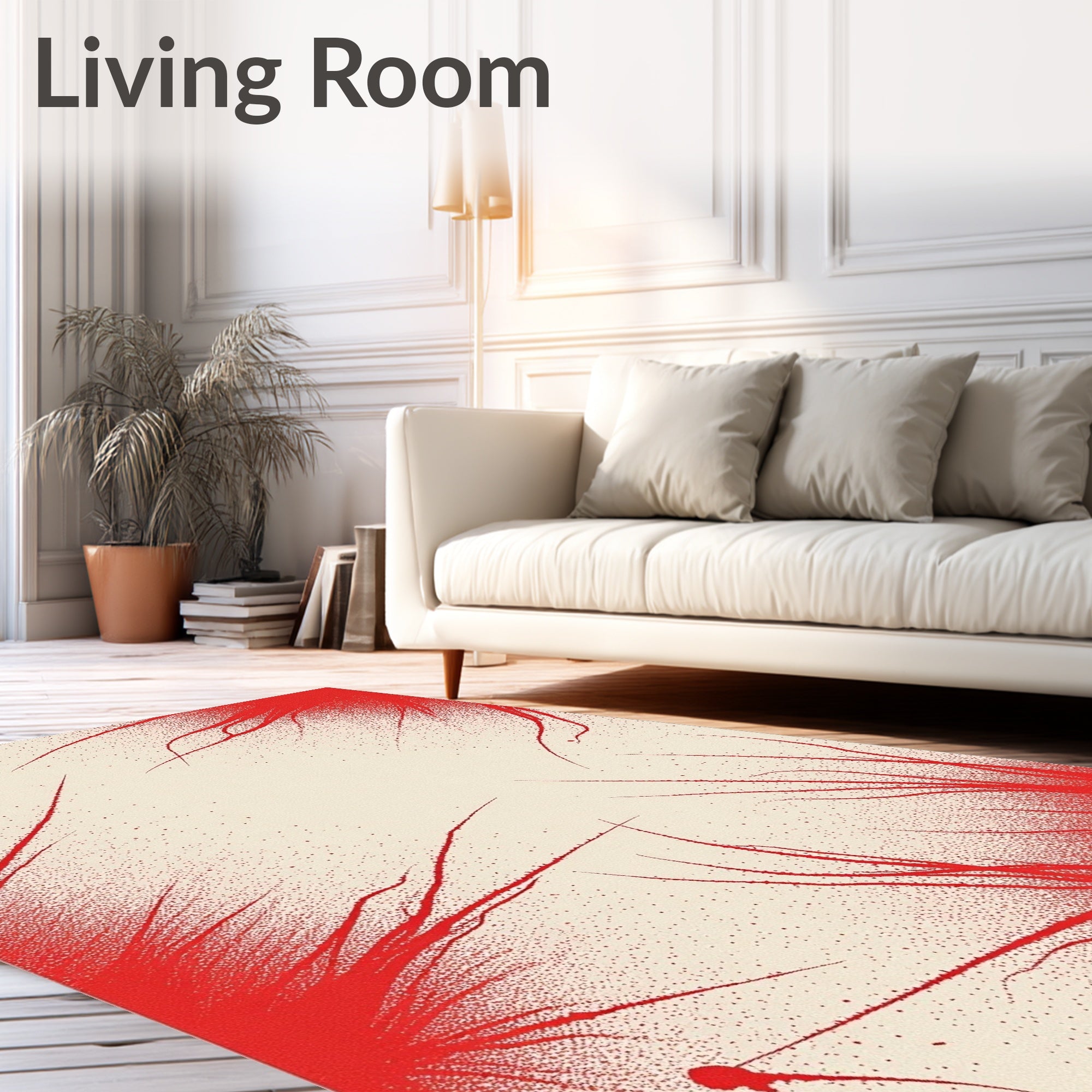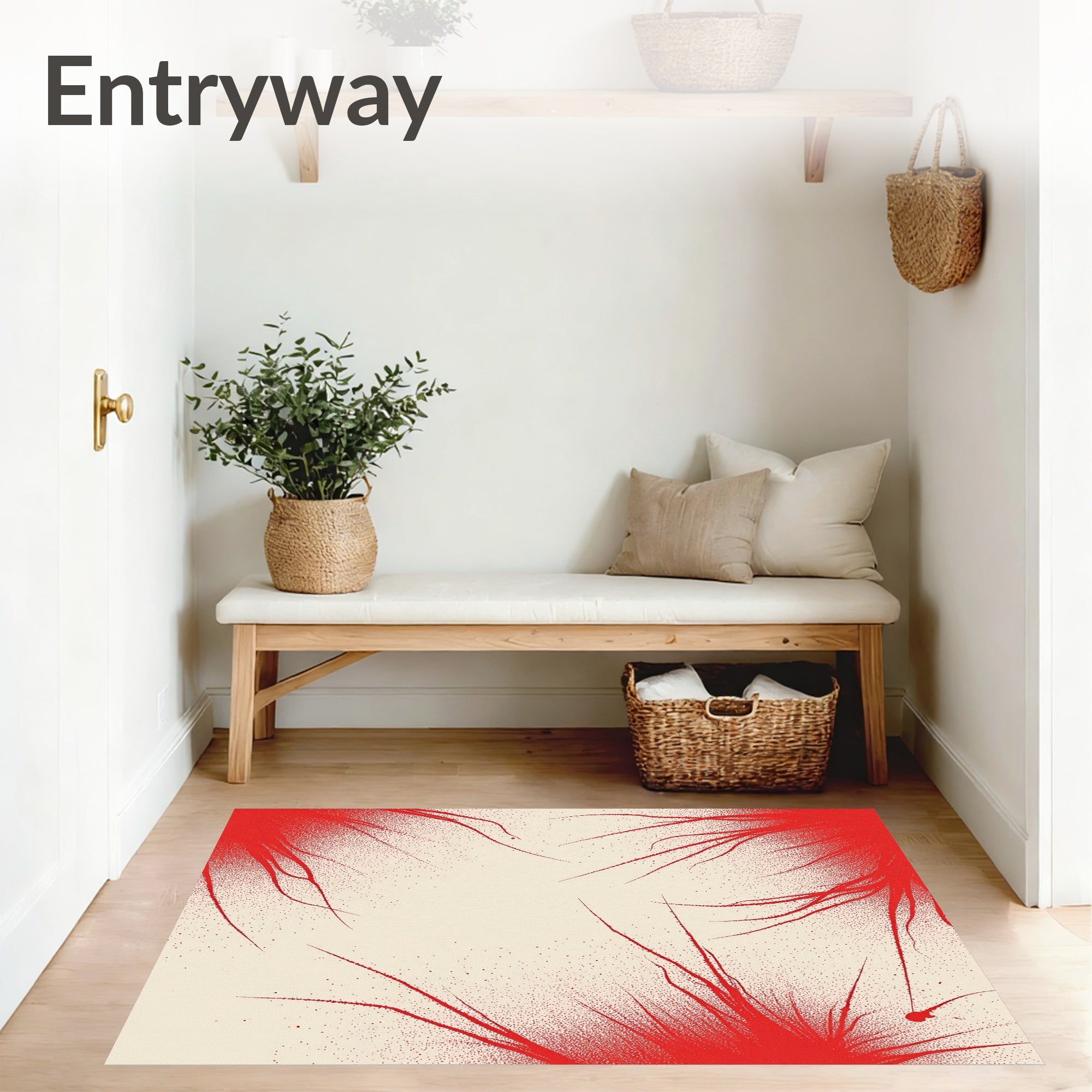 Flatwoven High Traffic Area Rug, Abstract Brushstroke Splatter Contemporary Artistic Expression, Non Slip, Stain Resistant, Washable Area Rugs for Living Room, Bedroom (Red) Overview: