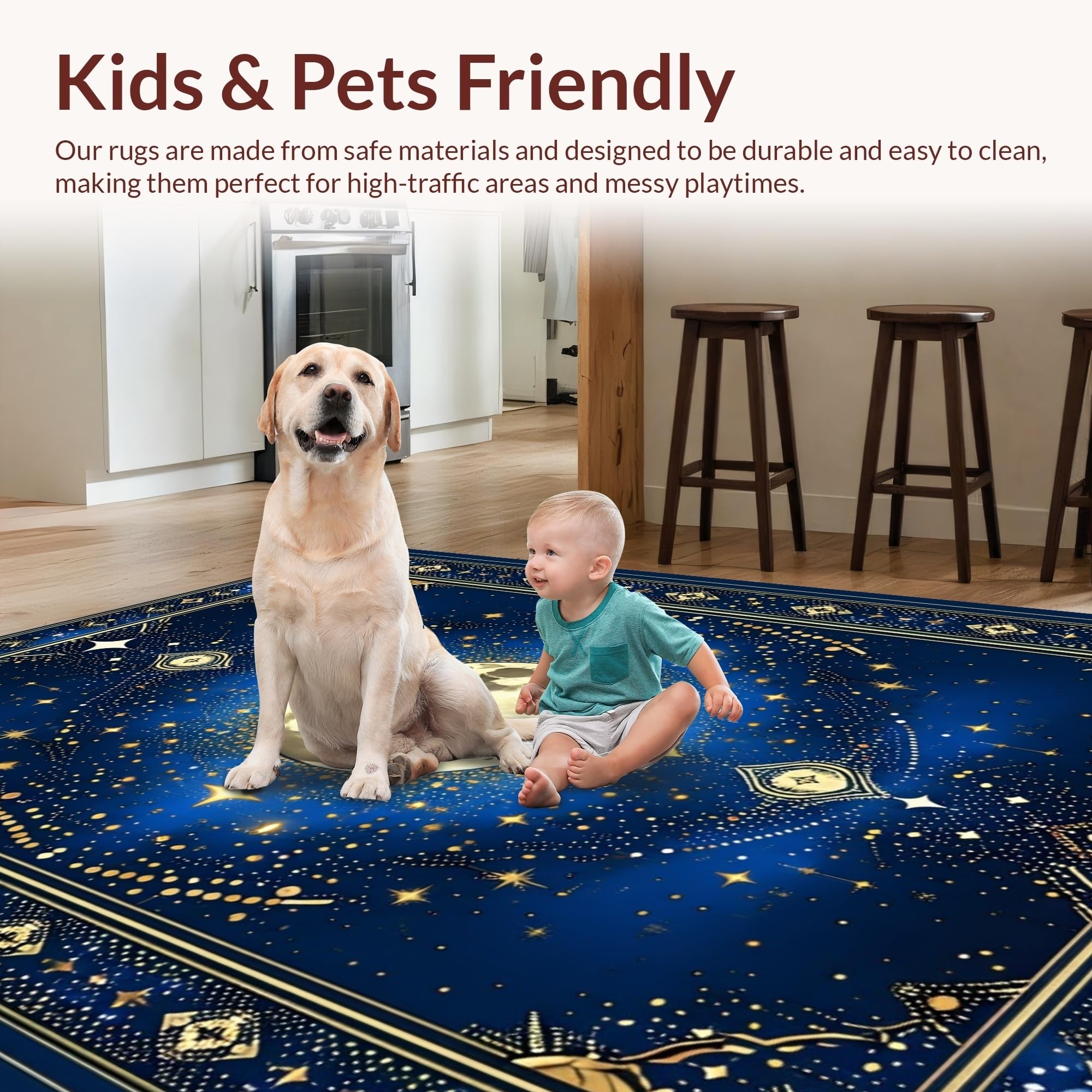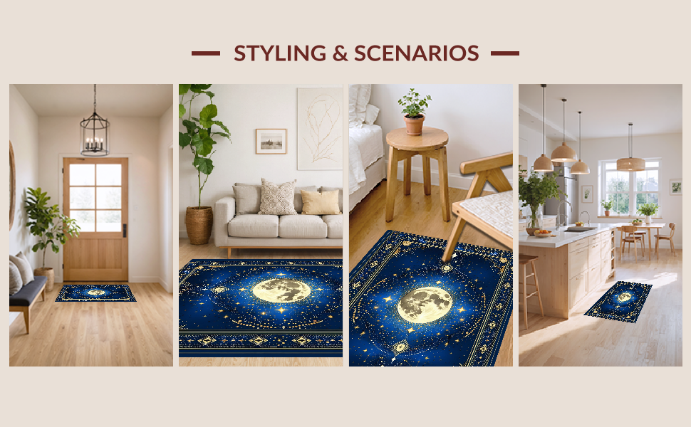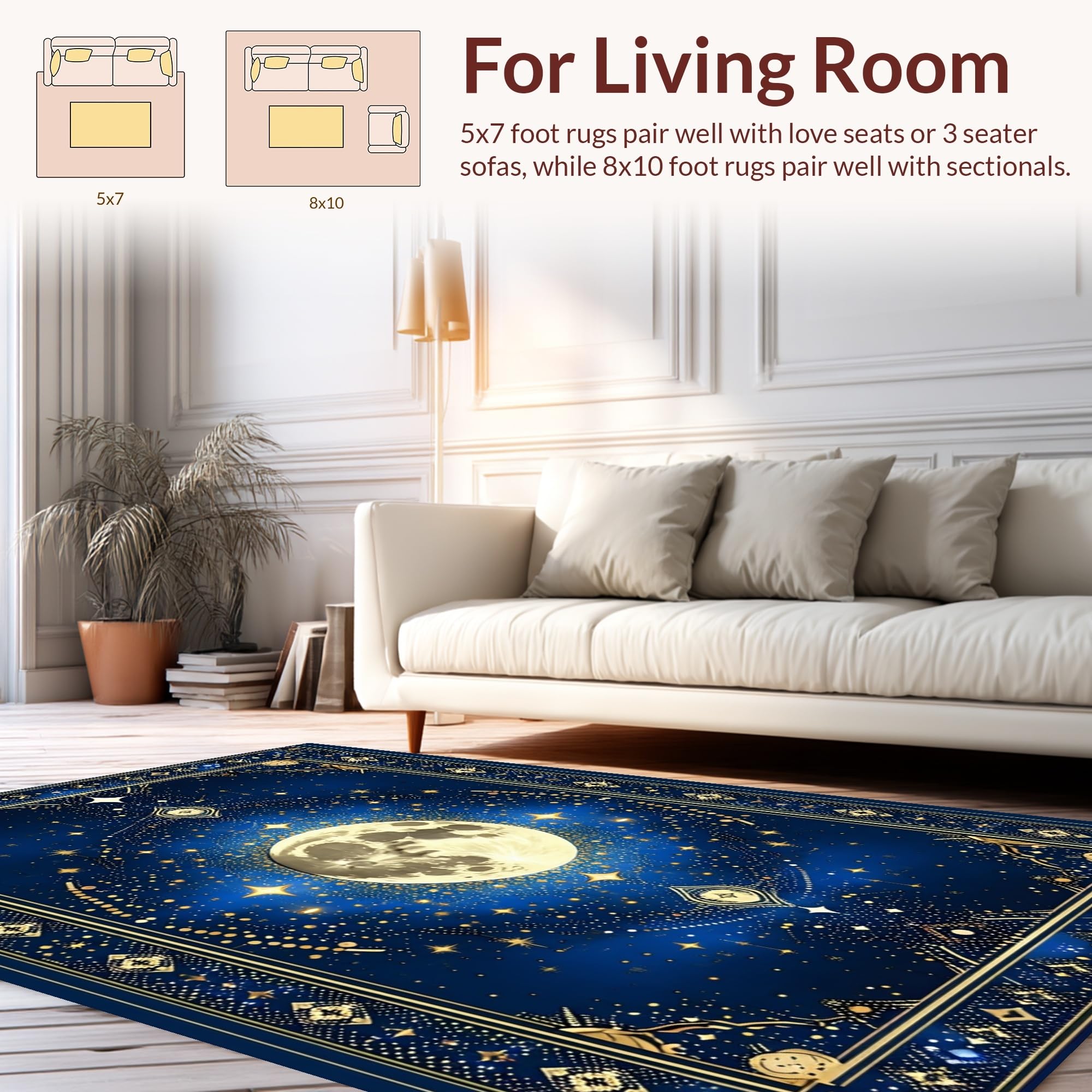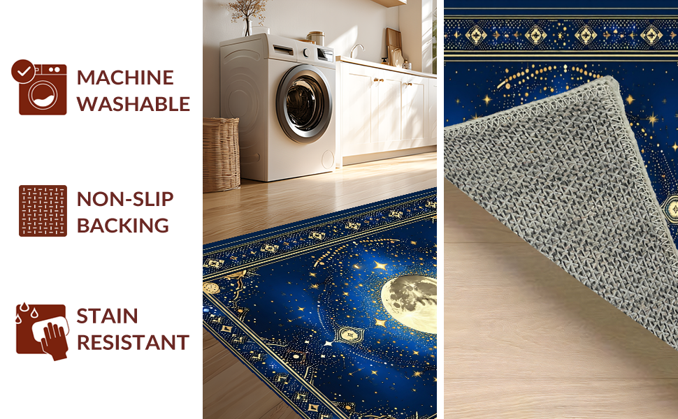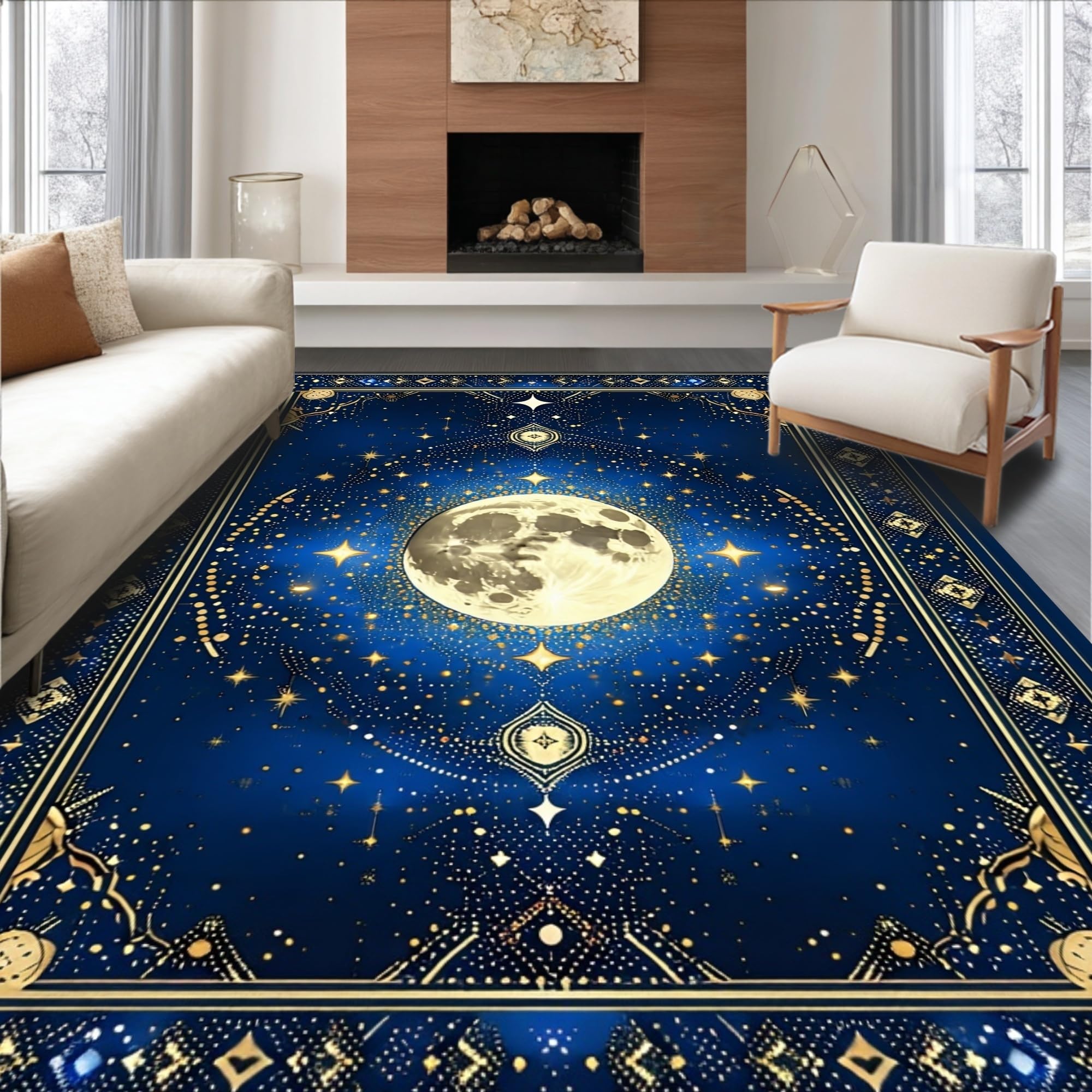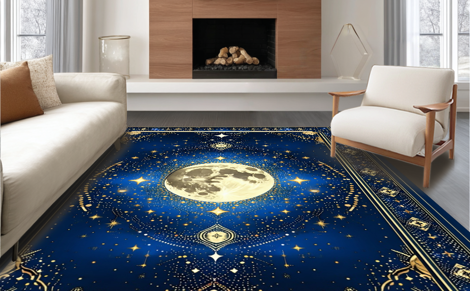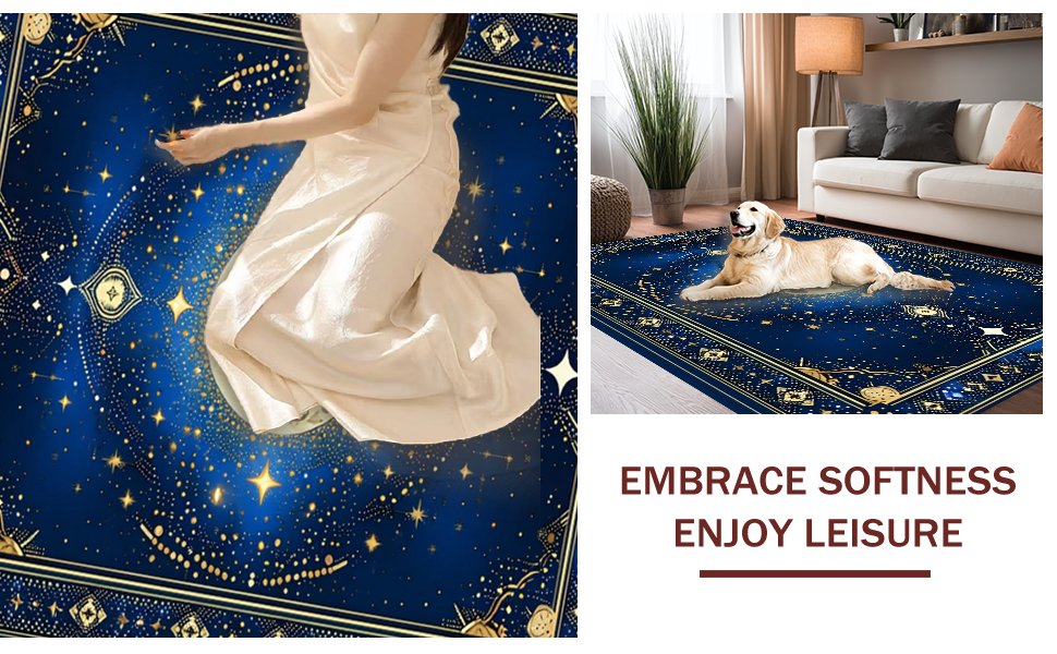 Ultra Soft Area Rug, Non Slip, Stain Resistant, Washable Area Rugs for Living Room, Bedroom, Abstract Celestial Bliss Composition(Blue) Overview: